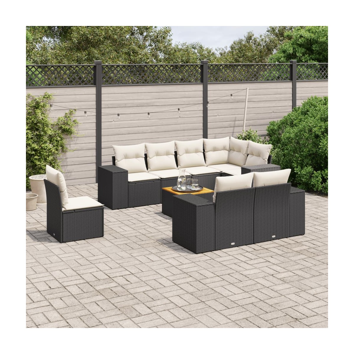 Este conjunto de sofás de jardín es el complemento perfecto para el jardín, terraza o patio, ya que proporciona un espacio confortable y acogedor para charlar con familiares y amigos o simplemente relajarte y disfrutar del aire libre. Material duradero: El ratán PE, también conocido como ratán sintético, es un material sintético resistente y de bajo mantenimiento que se parece al ratán natural. Es ligero, fácil de limpiar y se usa comúnmente para muebles de exterior debido a su durabilidad y propiedades resistentes a la intemperie.Superficie estable y fácil de limpiar: Esta mesa de jardín tiene una superficie de madera de acacia que es resistente, duradero y fácil de limpiar con un paño húmedo. Función de almacenaje con bolsa impermeable: Cada asiento de jardín cuenta con espacio de almacenamiento debajo del asiento, completo con una bolsa resistente al agua para guardar cojines, juguetes y otros artículos. Las bolsas interiores tienen una cubierta superior y pueden fijarse firmemente a los asientos con cierres adhesivos para mayor estabilidad.Experiencia de asiento cómoda: Estos muebles de exterior, completos con cojines acolchados gruesos, ofrecen una experiencia de asiento cómoda.Diseño modular: Este conjunto de muebles de exterior tiene un diseño modular, por lo que es completamente flexible y fácil de mover, para que puedas crear una disposición de muebles de exterior personalizada. Información útil:Para asegurarte de que tus muebles de exterior se mantengan hermosos, recomendamos protegerlos con una funda impermeable.