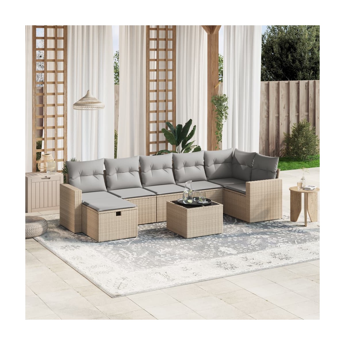 Este conjunto de sofás de jardín es el complemento perfecto para el jardín, terraza o patio, ya que proporciona un espacio confortable y acogedor para charlar con familiares y amigos o simplemente relajarte y disfrutar del aire libre. Material duradero: El ratán PE, también conocido como ratán sintético, es un material sintético resistente y de bajo mantenimiento que se parece al ratán natural. Es ligero, fácil de limpiar y se usa comúnmente para muebles de exterior debido a su durabilidad y propiedades resistentes a la intemperie.Superficie de vidrio: La superficie de la mesa de exterior es de vidrio templado resistente y duradero, por lo que es fácil de limpiar con un paño húmedo y añade un toque de elegancia a tu espacio exterior.Funda desenfundable y lavable: Estos cojines de asiento cuentan con fundas desenfundables para facilitar el lavado y mantenimiento.Estructura robusta y estable: La estructura de acero con recubrimiento en polvo garantiza que el mueble de jardín sea resistente y estable para usarlo a diario al aire libre.Diseño modular: Este conjunto de muebles de exterior tiene un diseño modular, por lo que es completamente flexible y fácil de mover, para que puedas crear una disposición de muebles de exterior personalizada. Información útil:Para asegurarte de que tus muebles de exterior se mantengan hermosos, recomendamos protegerlos con una funda impermeable.