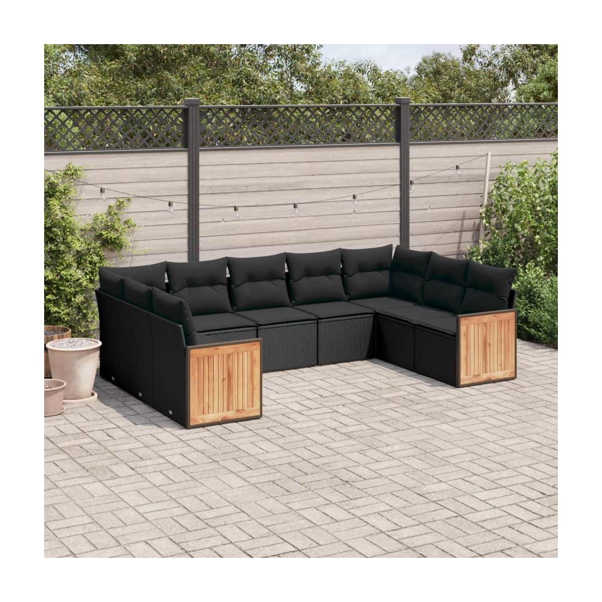 Este conjunto de sofás de jardín es el complemento perfecto para el jardín, terraza o patio, ya que proporciona un espacio confortable y acogedor para charlar con familiares y amigos o simplemente relajarte y disfrutar del aire libre. Material duradero: El ratán PE, también conocido como ratán sintético, es un material sintético resistente y de bajo mantenimiento que se parece al ratán natural. Es ligero, fácil de limpiar y se usa comúnmente para muebles de exterior debido a su durabilidad y propiedades resistentes a la intemperie.Experiencia de asiento cómoda: Estos muebles de exterior, completos con cojines acolchados gruesos, ofrecen una experiencia de asiento cómoda.Funda desenfundable y lavable: Estos cojines de asiento cuentan con fundas desenfundables para facilitar el lavado y mantenimiento.Diseño modular: Este conjunto de muebles de exterior tiene un diseño modular, por lo que es completamente flexible y fácil de mover, para que puedas crear una disposición de muebles de exterior personalizada. Información útil:Para asegurarte de que tus muebles de exterior se mantengan hermosos, recomendamos protegerlos con una funda impermeable.