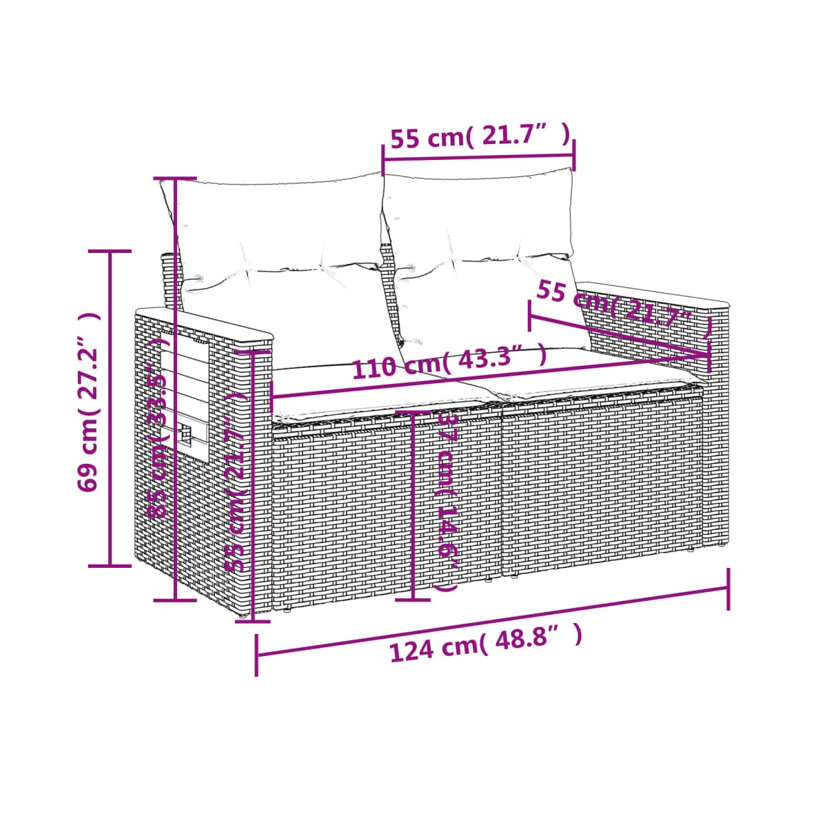 Este conjunto de sofás de jardín es el complemento perfecto para el jardín, terraza o patio, ya que proporciona un espacio confortable y acogedor para charlar con familiares y amigos o simplemente relajarte y disfrutar del aire libre. Material duradero: El ratán PE, también conocido como ratán sintético, es un material sintético resistente y de bajo mantenimiento que se parece al ratán natural. Es ligero, fácil de limpiar y se usa comúnmente para muebles de exterior debido a su durabilidad y propiedades resistentes a la intemperie.Cómoda mesa auxiliar: Este mueble de exterior cuenta con una mesa auxiliar plegable con un resorte de gas en los reposabrazos, lo que proporciona un lugar conveniente para mantener tus elementos esenciales al alcance de la mano.Funda desenfundable y lavable: Estos cojines de asiento cuentan con fundas desenfundables para facilitar el lavado y mantenimiento.Diseño modular: Este conjunto de muebles de exterior tiene un diseño modular, por lo que es completamente flexible y fácil de mover, para que puedas crear una disposición de muebles de exterior personalizada. Información útil:Para asegurarte de que tus muebles de exterior se mantengan hermosos, recomendamos protegerlos con una funda impermeable.