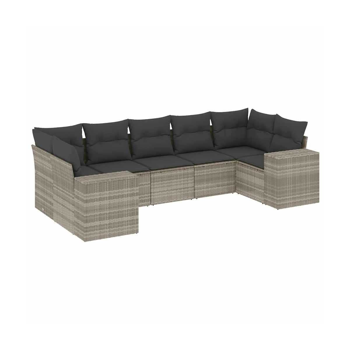 Este conjunto de sofás de jardín es el complemento perfecto para el jardín, terraza o patio, ya que proporciona un espacio confortable y acogedor para charlar con familiares y amigos o simplemente relajarte y disfrutar del aire libre. Material duradero: El ratán PE, también conocido como ratán sintético, es un material sintético resistente y de bajo mantenimiento que se parece al ratán natural. Es ligero, fácil de limpiar y se usa comúnmente para muebles de exterior debido a su durabilidad y propiedades resistentes a la intemperie.Experiencia de asiento cómoda: Estos muebles de exterior, completos con cojines acolchados gruesos, ofrecen una experiencia de asiento cómoda.Funda desenfundable y lavable: Estos cojines de asiento cuentan con fundas desenfundables para facilitar el lavado y mantenimiento.Diseño modular: Este conjunto de muebles de exterior tiene un diseño modular, por lo que es completamente flexible y fácil de mover, para que puedas crear una disposición de muebles de exterior personalizada. Información útil:Para asegurarte de que tus muebles de exterior se mantengan hermosos, recomendamos protegerlos con una funda impermeable.