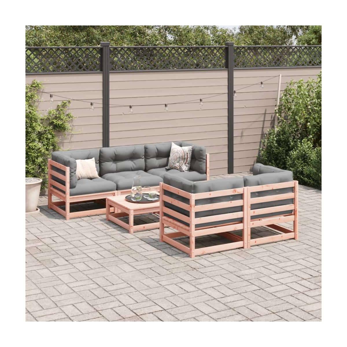Este conjunto de sofás de jardín es el complemento perfecto para el jardín, terraza o patio, ya que proporciona un espacio confortable y acogedor para charlar con familiares y amigos o simplemente relajarte y disfrutar del aire libre. Material resistente y duradero: La madera de abeto Douglas es conocida por su resistencia y durabilidad. Su intenso color marrón rojizo y su veteado único transmiten un ambiente cálido y natural. Con una buena estabilidad y resistencia a la intemperie, es ideal para fabricar muebles de interior y exterior. Buena ventilación y prevención de encharcamientos: El diseño de rejilla favorece un flujo de aire óptimo y evita eficazmente la acumulación de agua, lo que garantiza un asiento seco y cómodo. Diseño modular: Este conjunto de muebles de exterior tiene un diseño modular, por lo que es completamente flexible y fácil de mover, para que puedas crear una disposición de muebles de exterior personalizada. Información útil:Para asegurarte de que tus muebles de exterior se mantengan hermosos, recomendamos protegerlos con una funda impermeable.