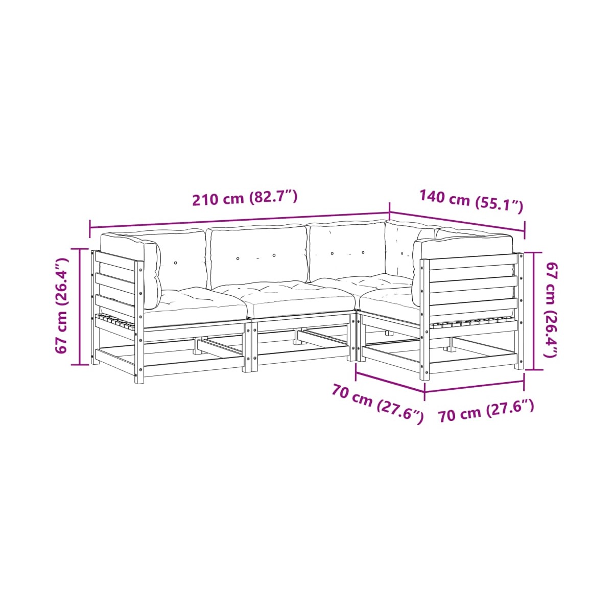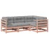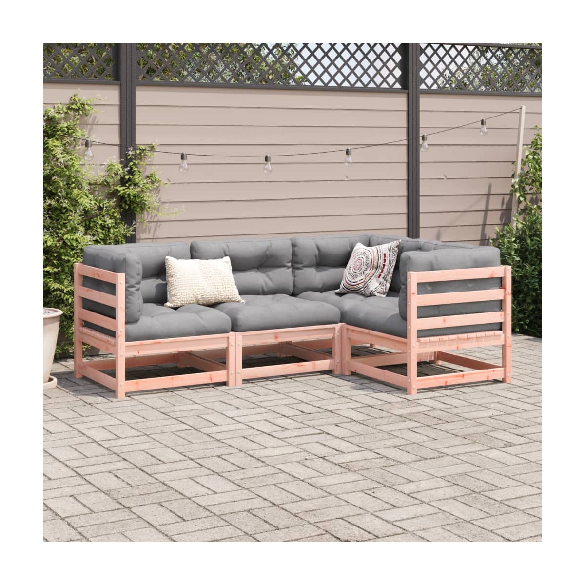 Este conjunto de sofás de jardín es el complemento perfecto para el jardín, terraza o patio, ya que proporciona un espacio confortable y acogedor para charlar con familiares y amigos o simplemente relajarte y disfrutar del aire libre. Material resistente y duradero: La madera de abeto Douglas es conocida por su resistencia y durabilidad. Su intenso color marrón rojizo y su veteado único transmiten un ambiente cálido y natural. Con una buena estabilidad y resistencia a la intemperie, es ideal para fabricar muebles de interior y exterior.Experiencia de asiento cómoda: Estos muebles de exterior, completos con cojines acolchados gruesos, ofrecen una experiencia de asiento cómoda.Buena ventilación y prevención de encharcamientos: El diseño de rejilla favorece un flujo de aire óptimo y evita eficazmente la acumulación de agua, lo que garantiza un asiento seco y cómodo.Diseño modular: Este conjunto de muebles de exterior tiene un diseño modular, por lo que es completamente flexible y fácil de mover, para que puedas crear una disposición de muebles de exterior personalizada. Información útil:Para asegurarte de que tus muebles de exterior se mantengan hermosos, recomendamos protegerlos con una funda impermeable.