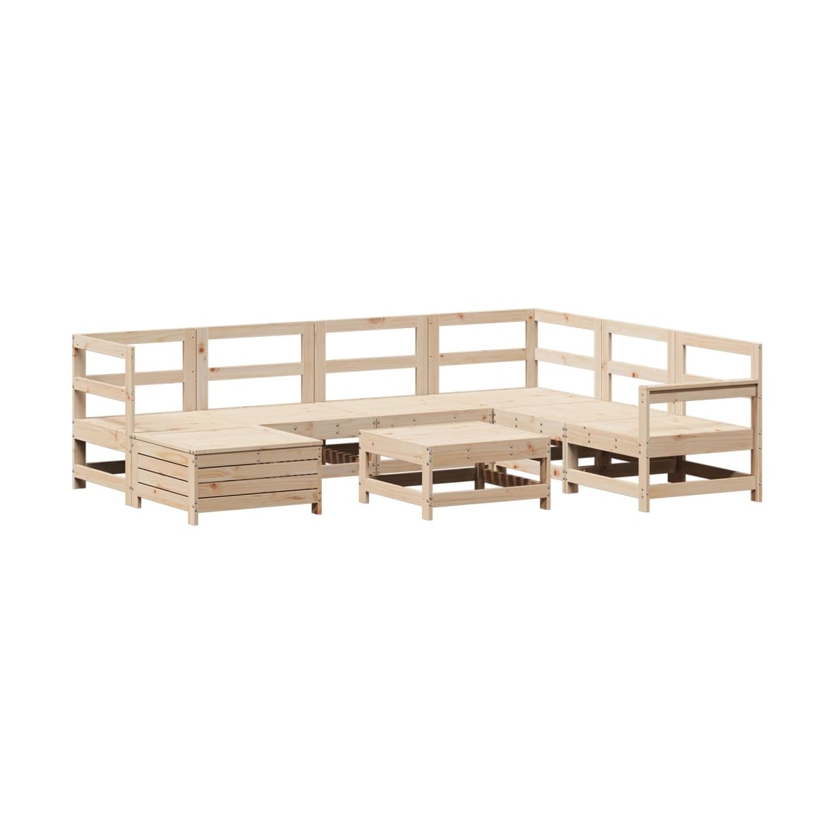 Este juego de sofás de jardín de madera, con un diseño de listones, será un gran complemento para el jardín, el patio o la terraza, para poder disfrutar de un rato agradable con la familia o los amigos. Material resistente y duradero: La madera maciza de pino es conocida por su resistencia y durabilidad. Sus vetas rectas y nudos característicos contribuyen a su encanto rústico. Buena ventilación y prevención de encharcamientos: El diseño de rejilla favorece un flujo de aire óptimo y evita eficazmente la acumulación de agua, lo que garantiza un asiento seco y cómodo. Uso versátil: El taburete de jardín no solo se puede usar para sentarse o relajar los pies, sino que también se puede usar como mesa de centro para guardar bebidas, comida y otros adornos. Diseño modular: Este conjunto de muebles de exterior tiene un diseño modular, por lo que es completamente flexible y fácil de mover, para que puedas crear una disposición de muebles de exterior personalizada. Información útil:Para asegurarte de que tus muebles de exterior se mantengan hermosos, recomendamos protegerlos con una funda impermeable.