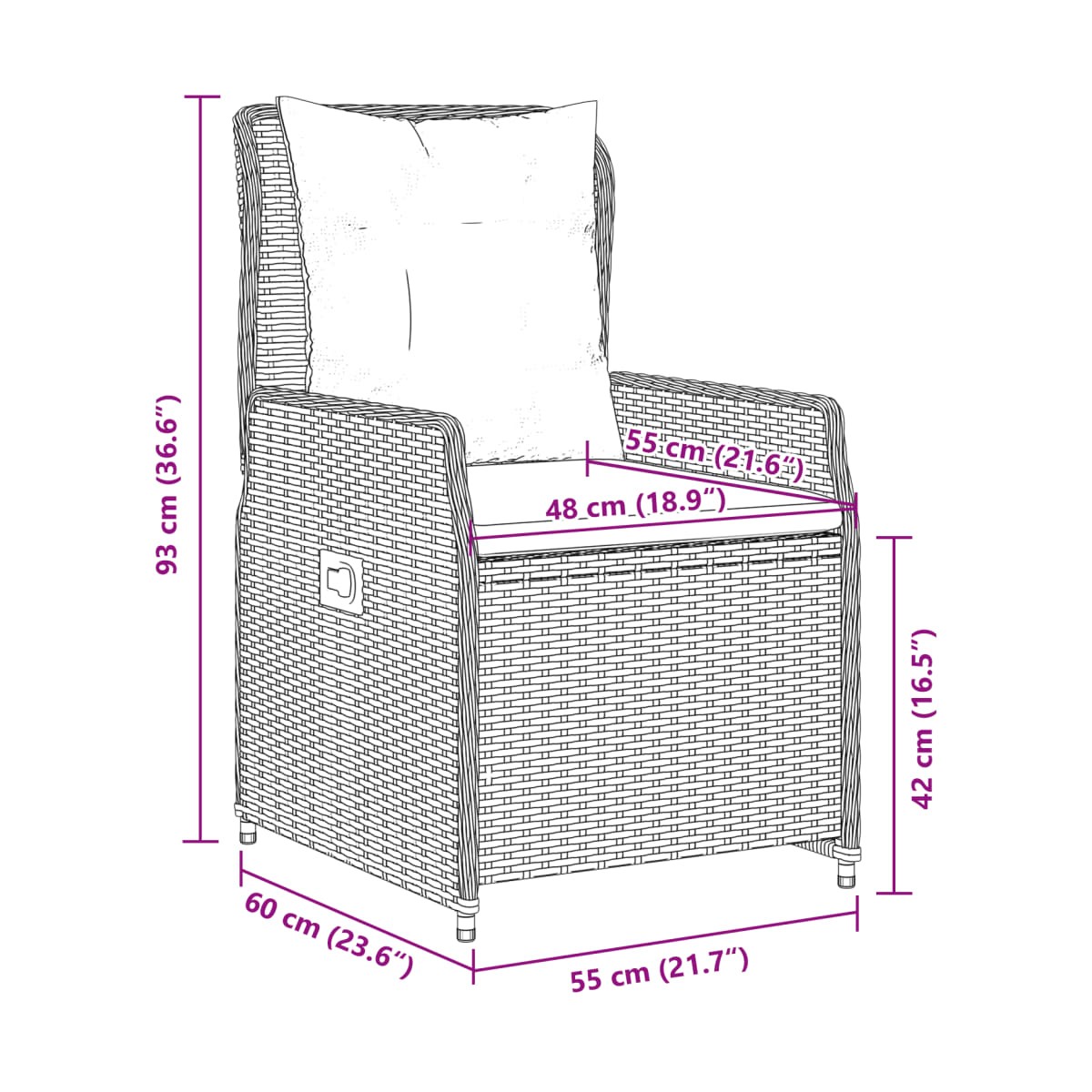 Este juego de comedor de jardín es una gran elección para comer al aire libre o simplemente para relajarte en el jardín, el patio o la terraza. Material duradero: El ratán PE, también conocido como ratán sintético, es un material sintético resistente y de bajo mantenimiento que se parece al ratán natural. Es ligero, fácil de limpiar y se usa comúnmente para muebles de exterior debido a su durabilidad y propiedades resistentes a la intemperie.Respaldo ajustable: Este asiento de jardín tiene un asa. Puedes ajustar el respaldo a cualquier posición tirando del asa y devolverlo rápidamente a su posición original.Funda extraíble y lavable: El cojín del asiento cuenta con una funda extraíble para facilitar el lavado y mantenimiento.Tablero ajustable: El tablero de la mesa se puede levantar para que la mesa sea más alta, lo que transforma la mesa al aire libre de una mesa de café a una mesa de comedor. Es perfecto para invitar a invitados o comer al aire libre.Superficie estable y fácil de limpiar: Esta mesa de jardín tiene una superficie de madera de acacia que es resistente, duradero y fácil de limpiar con un paño húmedo. Información útil:Para asegurarte de que tus muebles de exterior se mantengan hermosos, recomendamos protegerlos con una funda impermeable.