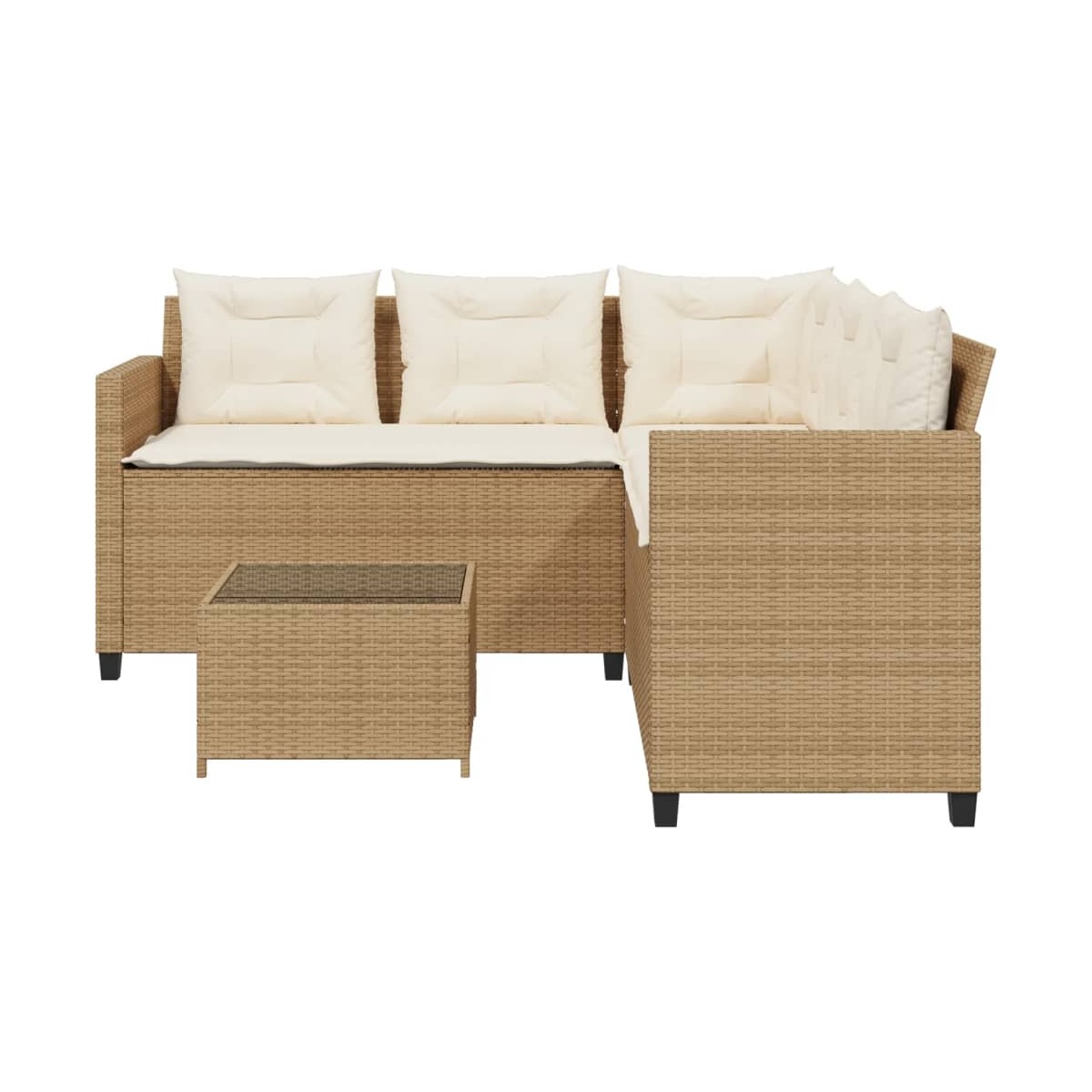 Este sofá de jardín en forma de L es el complemento perfecto para tu jardín, terraza o patio, ya que proporciona un espacio cómodo y acogedor para charlar con familiares y amigos o simplemente relajarse y disfrutar del aire libre. Material duradero: El ratán PE, también conocido como ratán sintético, es un material sintético resistente y de bajo mantenimiento que se parece al ratán natural. Es ligero, fácil de limpiar y se usa comúnmente para muebles de exterior debido a su durabilidad y propiedades resistentes a la intemperie.Experiencia de asiento cómoda: Estos muebles de exterior, completos con cojines acolchados gruesos, ofrecen una experiencia de asiento cómoda.Superficie de vidrio: La superficie de la mesa de exterior es de vidrio templado resistente y duradero, por lo que es fácil de limpiar con un paño húmedo y añade un toque de elegancia a tu espacio exterior.Funda desenfundable y lavable: Estos cojines de asiento cuentan con fundas desenfundables para facilitar el lavado y mantenimiento.Estructura robusta y estable: La estructura de acero con recubrimiento en polvo garantiza que el mueble de jardín sea resistente y estable para usarlo a diario al aire libre. Información útil:Para asegurarte de que tus muebles de exterior se mantengan hermosos, recomendamos protegerlos con una funda impermeable.