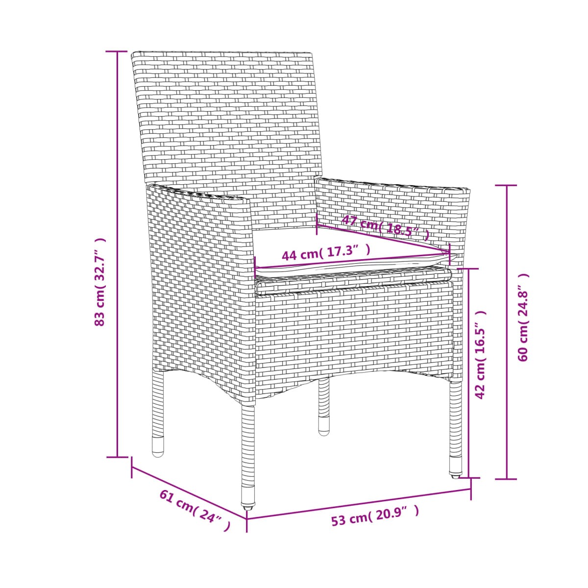 - Dimensiones del asiento: 44 x 47 cm (ancho x profundo)