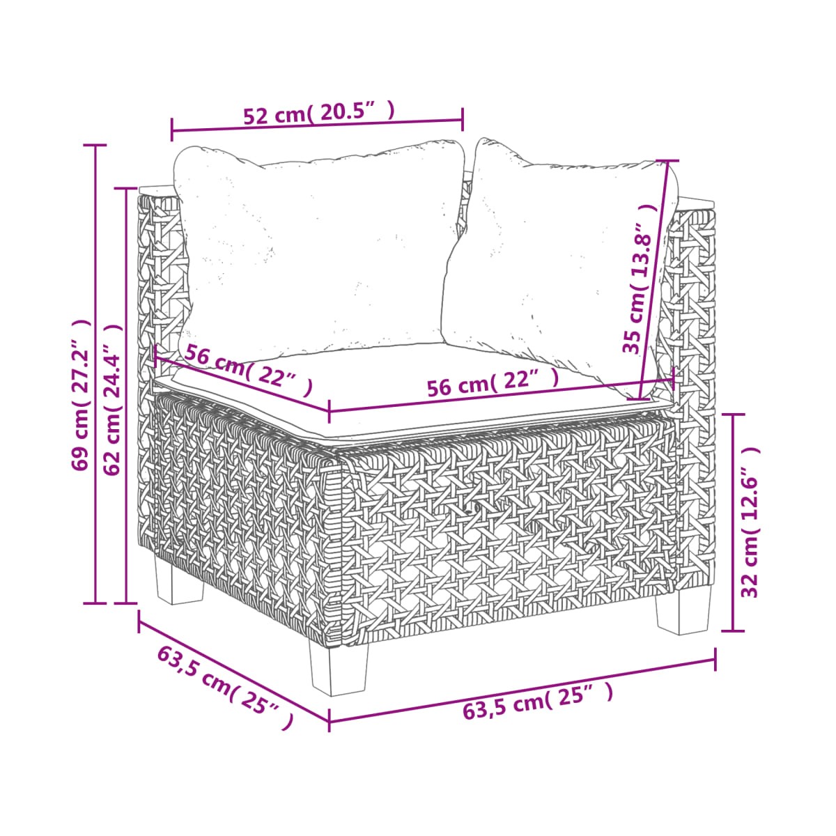 - Dimensiones del cojín del asiento (esquina): 56,5 x 56,5 x 3 cm (ancho x profundo x grosor)
