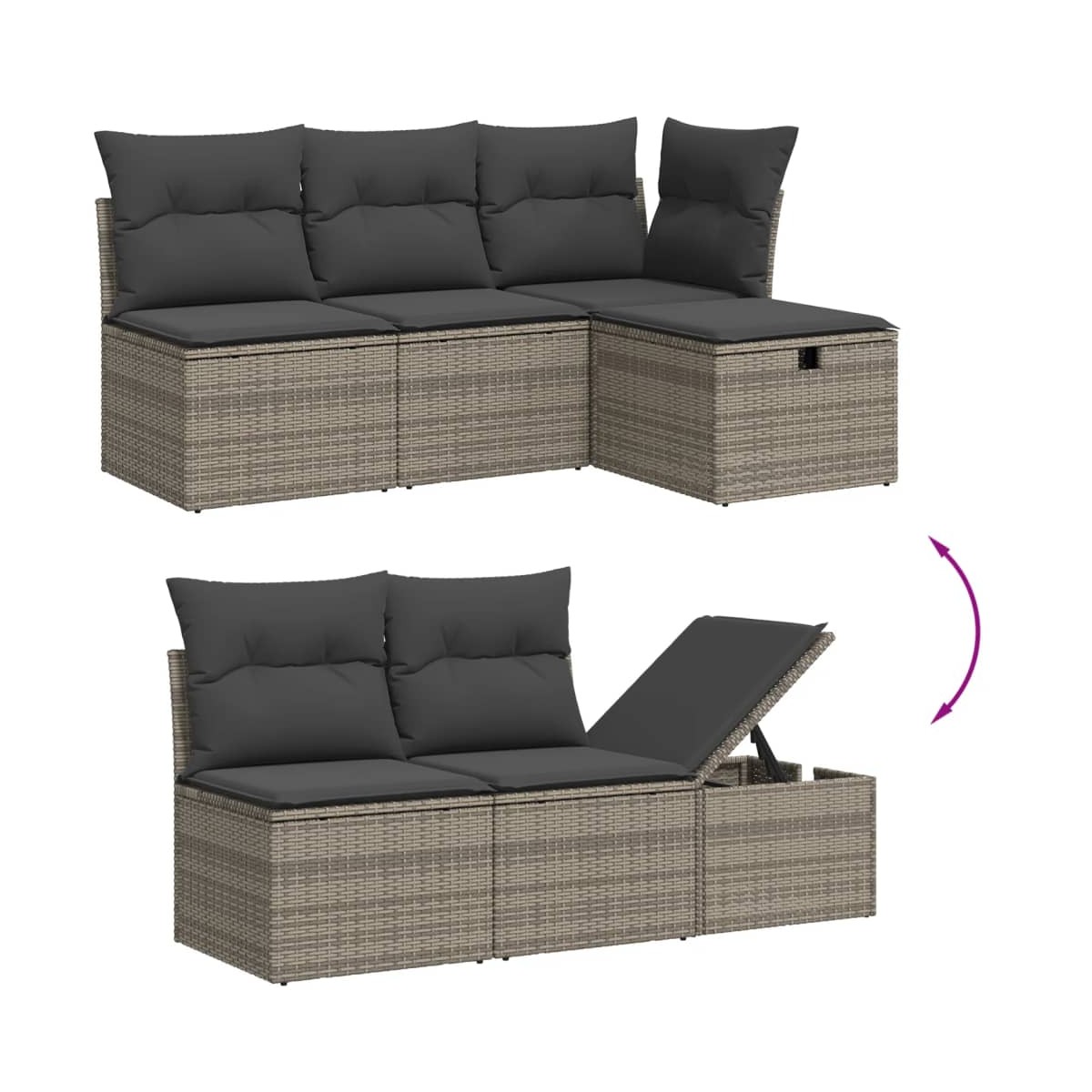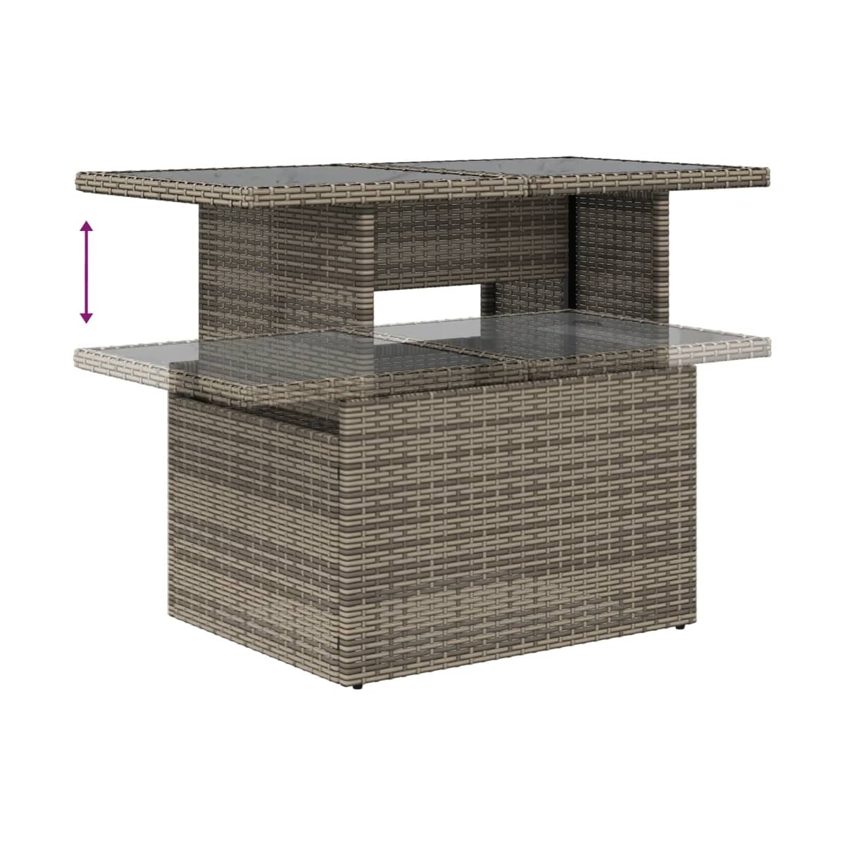 Este conjunto de sofás de jardín es el complemento perfecto para el jardín, terraza o patio, ya que proporciona un espacio confortable y acogedor para charlar con familiares y amigos o simplemente relajarte y disfrutar del aire libre. Material duradero: El ratán PE, también conocido como ratán sintético, es un material sintético resistente y de bajo mantenimiento que se parece al ratán natural. Es ligero, fácil de limpiar y se usa comúnmente para muebles de exterior debido a su durabilidad y propiedades resistentes a la intemperie.Tablero ajustable: El tablero de la mesa se puede levantar para que la mesa sea más alta, lo que transforma la mesa de jardín de una mesa de centro a una mesa de comedor. Es perfecta para invitar a invitados o comer al aire libre.Funda desenfundable y lavable: Estos cojines de asiento cuentan con fundas desenfundables para facilitar el lavado y mantenimiento.Diseño modular: Este conjunto de muebles de exterior tiene un diseño modular, por lo que es completamente flexible y fácil de mover, para que puedas crear una disposición de muebles de exterior personalizada. Información útil:Para asegurarte de que tus muebles de exterior se mantengan hermosos, recomendamos protegerlos con una funda impermeable.