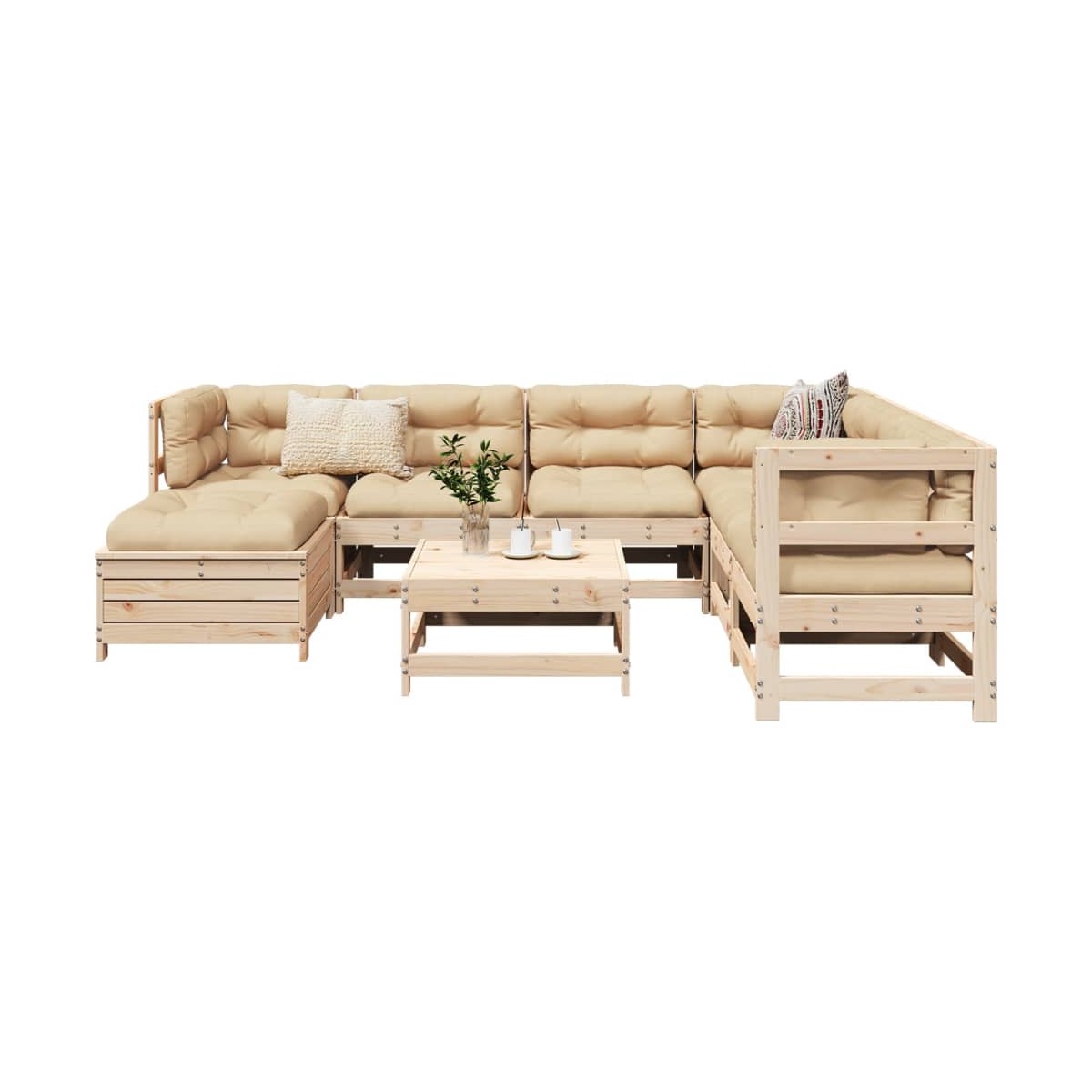 Este juego de sofás de jardín de madera, con un diseño de listones, será un gran complemento para el jardín, el patio o la terraza, para poder disfrutar de un rato agradable con la familia o los amigos. Material resistente y duradero: La madera maciza de pino es conocida por su resistencia y durabilidad. Sus vetas rectas y nudos característicos contribuyen a su encanto rústico. Buena ventilación y prevención de encharcamientos: El diseño de rejilla favorece un flujo de aire óptimo y evita eficazmente la acumulación de agua, lo que garantiza un asiento seco y cómodo. Uso versátil: El taburete de jardín no solo se puede usar para sentarse o relajar los pies, sino que también se puede usar como mesa de centro para guardar bebidas, comida y otros adornos. Diseño modular: Este conjunto de muebles de exterior tiene un diseño modular, por lo que es completamente flexible y fácil de mover, para que puedas crear una disposición de muebles de exterior personalizada. Información útil:Para asegurarte de que tus muebles de exterior se mantengan hermosos, recomendamos protegerlos con una funda impermeable.