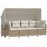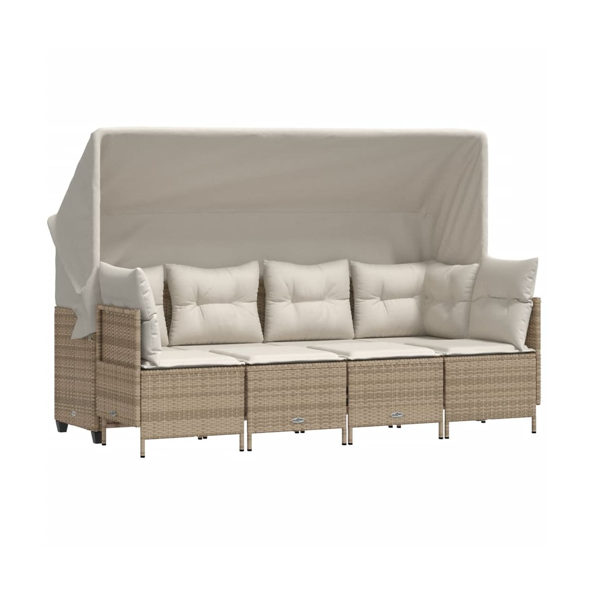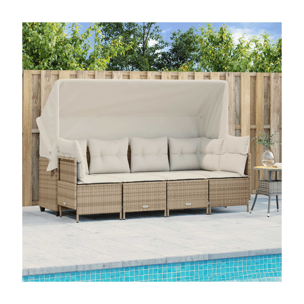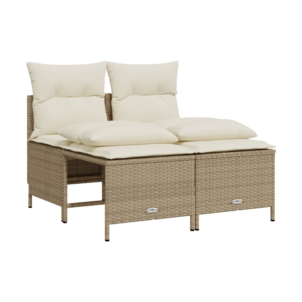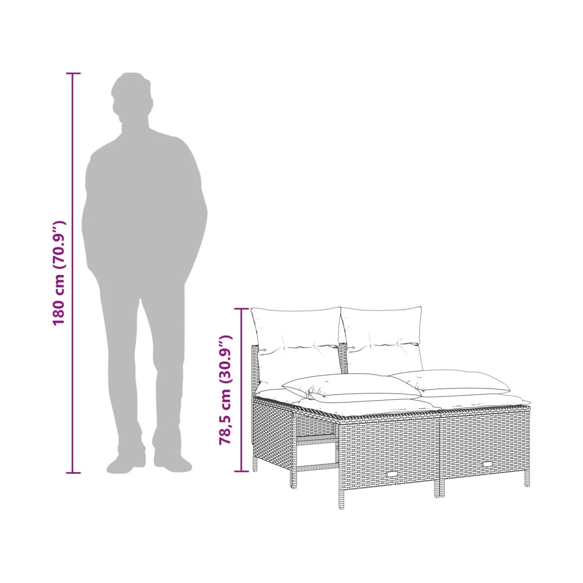 Este conjunto de sofás de jardín es el complemento perfecto para el jardín, terraza o patio, ya que proporciona un espacio confortable y acogedor para charlar con familiares y amigos o simplemente relajarte y disfrutar del aire libre. Material duradero: El ratán PE, también conocido como ratán sintético, es un material sintético resistente y de bajo mantenimiento que se parece al ratán natural. Es ligero, fácil de limpiar y se usa comúnmente para muebles de exterior debido a su durabilidad y propiedades resistentes a la intemperie.Capota retráctil: Gracias al toldo retráctil, podrás crear un ambiente exterior fresco y agradable durante todo el día.Experiencia de asiento cómoda: Estos muebles de exterior, completos con cojines acolchados gruesos, ofrecen una experiencia de asiento cómoda.Reposapiés versátil: El taburete es versátil y sirve como un cómodo reposapiés para cuando descanses en el sofá o como asiento adicional en tu jardín.Funda desenfundable y lavable: Estos cojines de asiento cuentan con fundas desenfundables para facilitar el lavado y mantenimiento. Información útil:Para asegurarte de que tus muebles de exterior se mantengan hermosos, recomendamos protegerlos con una funda impermeable.