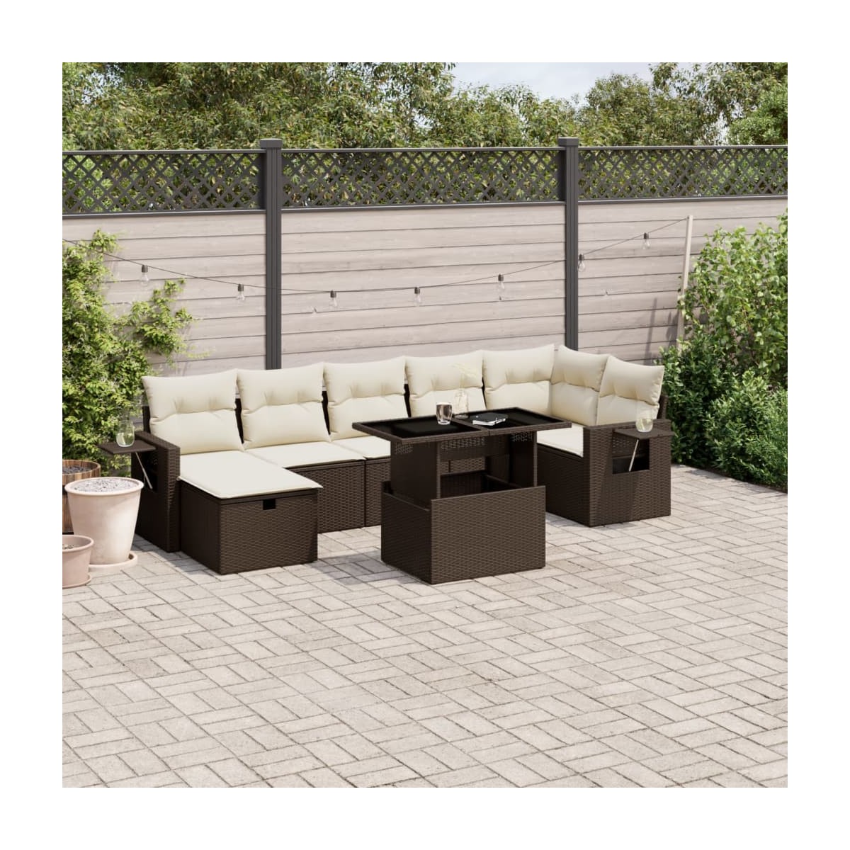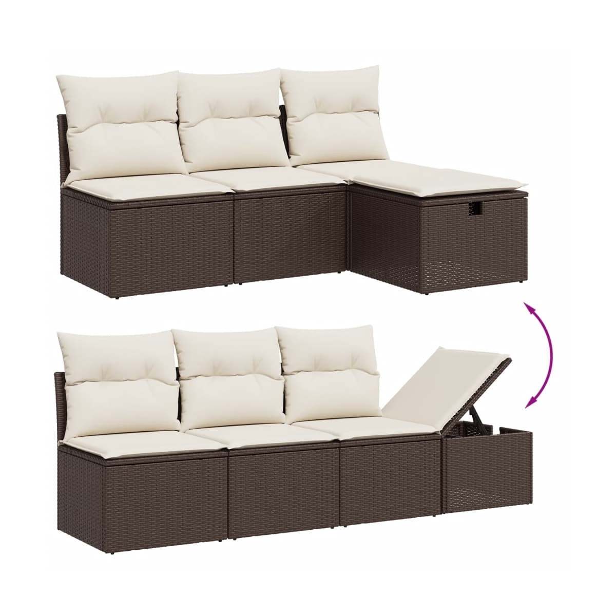 Este conjunto de sofás de jardín es el complemento perfecto para el jardín, terraza o patio, ya que proporciona un espacio confortable y acogedor para charlar con familiares y amigos o simplemente relajarte y disfrutar del aire libre. Material duradero: El ratán PE, también conocido como ratán sintético, es un material sintético resistente y de bajo mantenimiento que se parece al ratán natural. Es ligero, fácil de limpiar y se usa comúnmente para muebles de exterior debido a su durabilidad y propiedades resistentes a la intemperie.Tablero ajustable: El tablero de la mesa se puede levantar para que la mesa sea más alta, lo que transforma la mesa de jardín de una mesa de centro a una mesa de comedor. Es perfecta para invitar a invitados o comer al aire libre.Funda desenfundable y lavable: Estos cojines de asiento cuentan con fundas desenfundables para facilitar el lavado y mantenimiento.Diseño modular: Este conjunto de muebles de exterior tiene un diseño modular, por lo que es completamente flexible y fácil de mover, para que puedas crear una disposición de muebles de exterior personalizada. Información útil:Para asegurarte de que tus muebles de exterior se mantengan hermosos, recomendamos protegerlos con una funda impermeable.