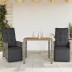 ¡Disfruta de un café o charla con tu familia y amigos en el jardín, patio trasero o balcón con este cómodo juego de bistró! Material duradero: El ratán PE, también conocido como ratán sintético, es un material sintético resistente y de bajo mantenimiento que se parece al ratán natural. Es ligero, fácil de limpiar y se usa comúnmente para muebles de exterior debido a su durabilidad y propiedades resistentes a la intemperie.Respaldo y reposapiés ajustables: este asiento de jardín tiene un asa. Puede ajustar el respaldo y el reposapiés a cualquier posición tirando del asa y devolverlo rápidamente a su posición original.Experiencia de asiento cómoda: Estos muebles de exterior, completos con cojines acolchados gruesos, ofrecen una experiencia de asiento cómoda.Funda desenfundable y lavable: Estos cojines de asiento cuentan con fundas desenfundables para facilitar el lavado y mantenimiento. Los cojines del respaldo tienen una solapa en la parte posterior para facilitar la fijación a los respaldos.Superficie estable y fácil de limpiar: Esta mesa de jardín tiene una superficie de madera de acacia que es resistente, duradero y fácil de limpiar con un paño húmedo. Información útil:Para asegurarte de que tus muebles de exterior se mantengan hermosos, recomendamos protegerlos con una funda impermeable.