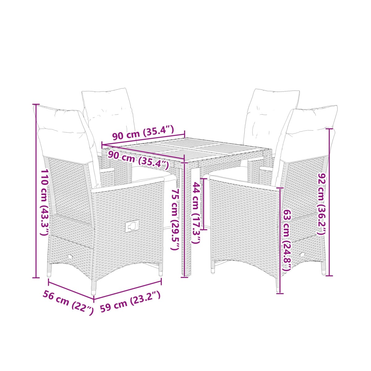 - Material: Ratán PE, acero con recubrimiento en polvo, madera maciza de acacia con acabado de aceite