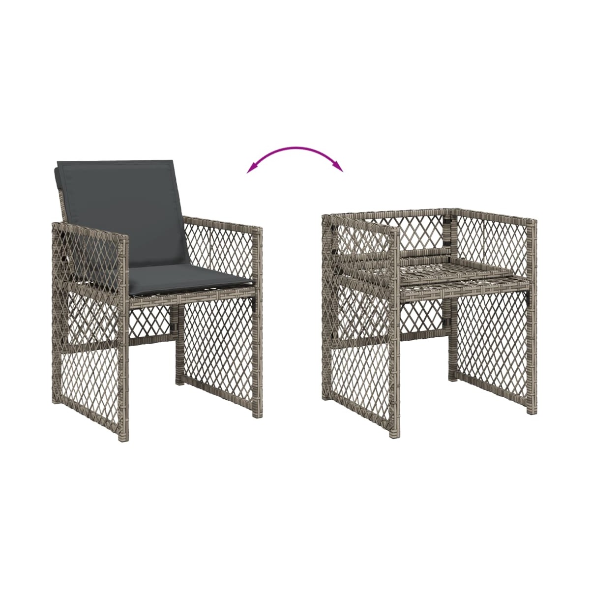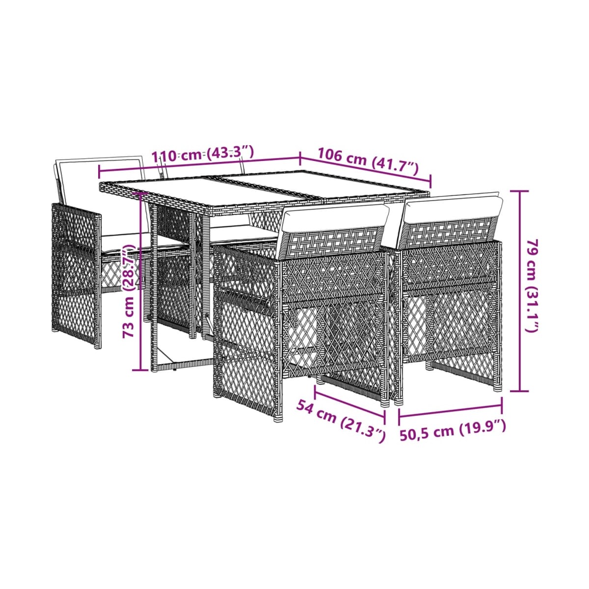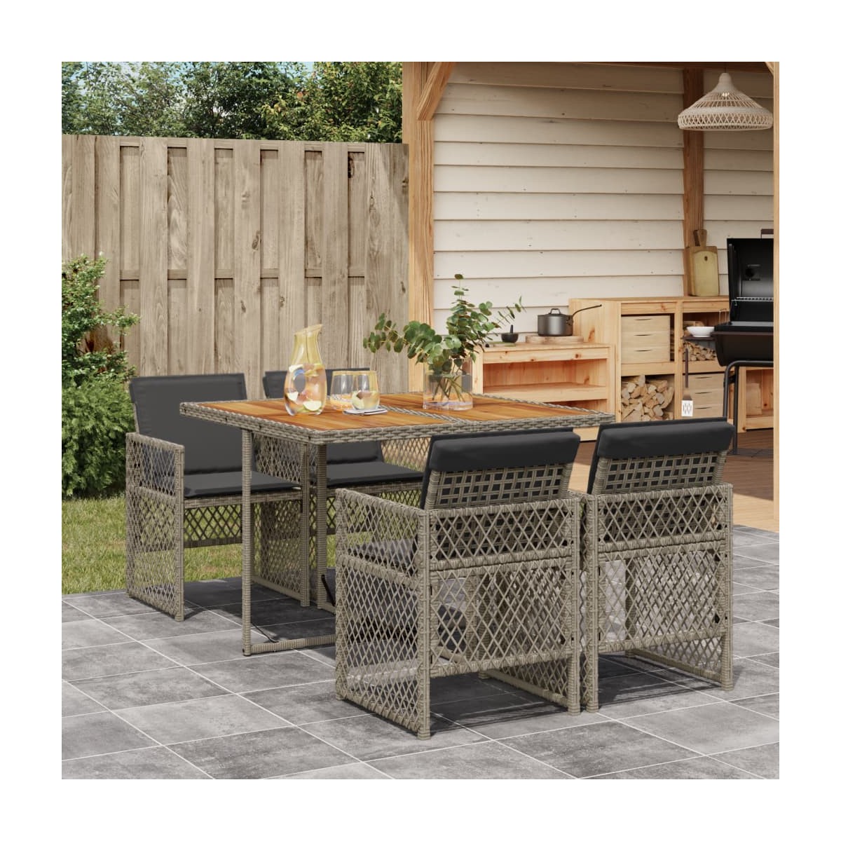 Este juego de comedor de jardín es una gran elección para comer al aire libre o simplemente para relajarte en el jardín, el patio o la terraza. Material duradero: El ratán PE, también conocido como ratán sintético, es un material sintético resistente y de bajo mantenimiento que se parece al ratán natural. Es ligero, fácil de limpiar y se usa comúnmente para muebles de exterior debido a su durabilidad y propiedades resistentes a la intemperie. Superficie estable y fácil de limpiar: Esta mesa de jardín tiene una superficie de madera de acacia que es resistente, duradero y fácil de limpiar con un paño húmedo. Almacenamiento compacto: Estas sillas tienen un respaldo abatible que facilita su almacenamiento debajo de la mesa. Una vez plegadas, encajan perfectamente debajo de la mesa, formando un cubo que ahorra espacio. Experiencia de asiento cómoda: Estos muebles de exterior, completos con cojines acolchados gruesos, ofrecen una experiencia de asiento cómoda. Funda extraíble y lavable: Estos cojines para sillas cuentan con fundas extraíbles para facilitar su lavado y mantenimiento. Las fundas de los cojines de silla tienen una solapa en la parte posterior para facilitar su fijación a las sillas. Información útil:Para asegurarte de que tus muebles de exterior se mantengan hermosos, recomendamos protegerlos con una funda impermeable.