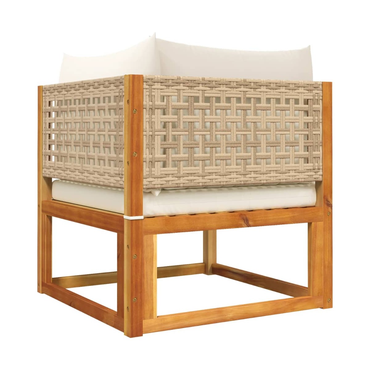 Este conjunto de sofás de jardín es el complemento perfecto para el jardín, terraza o patio, ya que proporciona un espacio confortable y acogedor para charlar con familiares y amigos o simplemente relajarte y disfrutar del aire libre. Estructura robusta y estable: La madera maciza de acacia es conocida por su resistencia y durabilidad. Sus diversos colores y patrones de vetas únicos le dan una apariencia atractiva. Con buena estabilidad y resistencia a la intemperie, es ideal para fabricar muebles de interior y exterior. Experiencia de asiento cómoda: Estos muebles de exterior, completos con cojines acolchados gruesos, ofrecen una experiencia de asiento cómoda.Bien ventilado y prevención de la acumulación de agua: El diseño de listones promueve un flujo de aire óptimo y evita eficazmente la acumulación de agua, lo que garantiza un mobiliario de jardín seco y cómodo.Funda desenfundable y lavable: Estos cojines de asiento cuentan con fundas desenfundables para facilitar el lavado y mantenimiento.Diseño modular: Estos muebles de exterior tienen un diseño modular, por lo que son completamente flexible y fácil de mover, para que puedas crear una disposición de muebles de exterior personalizada. Información útil:Para asegurarte de que tus muebles de exterior se mantengan hermosos, recomendamos protegerlos con una funda impermeable.
