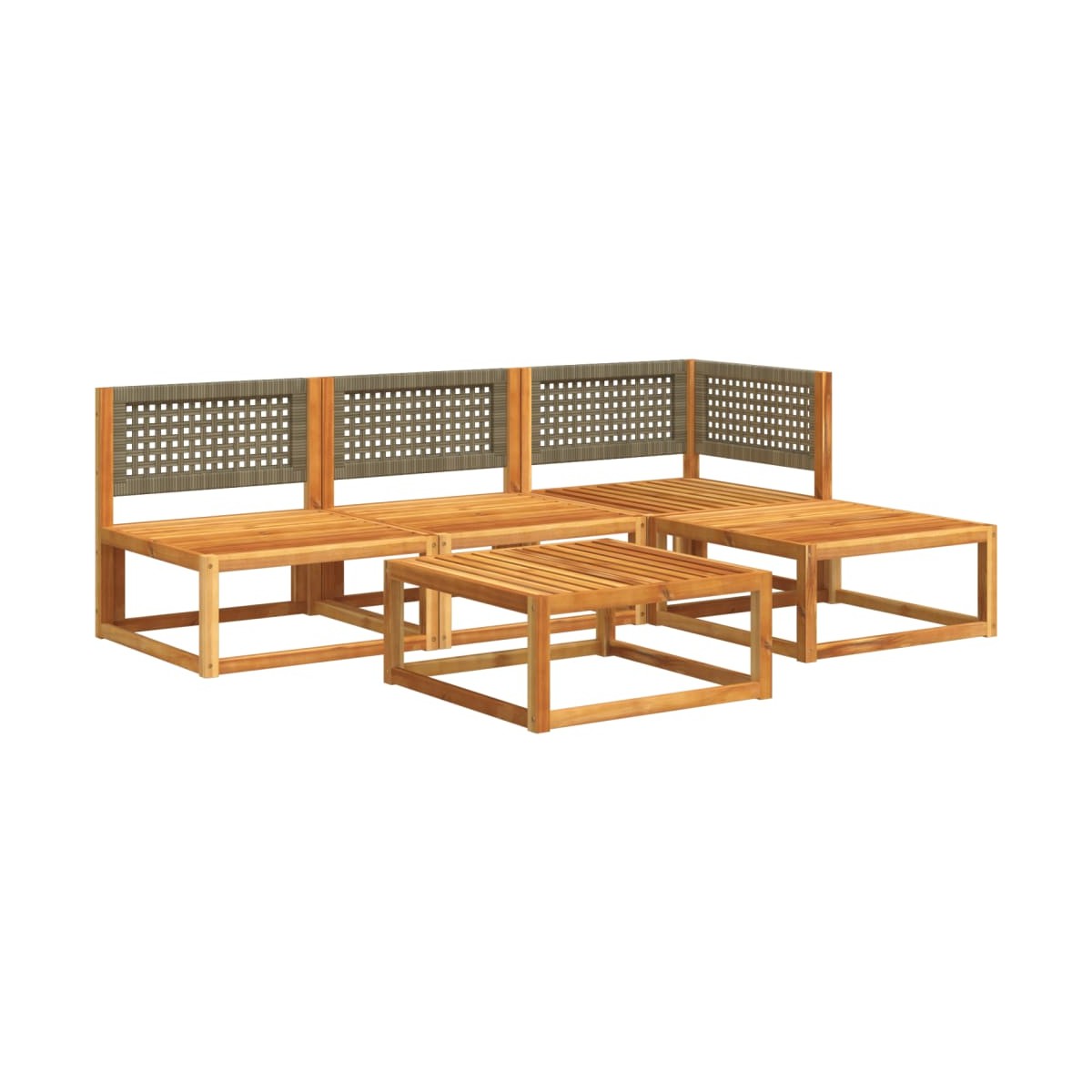 Este conjunto de sofás de jardín es el complemento perfecto para el jardín, terraza o patio, ya que proporciona un espacio confortable y acogedor para charlar con familiares y amigos o simplemente relajarte y disfrutar del aire libre. Estructura robusta y estable: La madera maciza de acacia es conocida por su resistencia y durabilidad. Sus diversos colores y patrones de vetas únicos le dan una apariencia atractiva. Con buena estabilidad y resistencia a la intemperie, es ideal para fabricar muebles de interior y exterior. Experiencia de asiento cómoda: Estos muebles de exterior, completos con cojines acolchados gruesos, ofrecen una experiencia de asiento cómoda.Bien ventilado y prevención de la acumulación de agua: El diseño de listones promueve un flujo de aire óptimo y evita eficazmente la acumulación de agua, lo que garantiza un mobiliario de jardín seco y cómodo.Funda desenfundable y lavable: Estos cojines de asiento cuentan con fundas desenfundables para facilitar el lavado y mantenimiento.Diseño modular: Estos muebles de exterior tienen un diseño modular, por lo que son completamente flexible y fácil de mover, para que puedas crear una disposición de muebles de exterior personalizada. Información útil:Para asegurarte de que tus muebles de exterior se mantengan hermosos, recomendamos protegerlos con una funda impermeable.