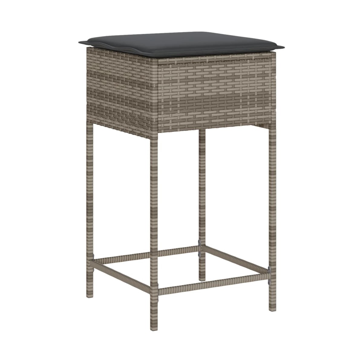 Este juego de bar de jardín de moda, que combina estilo y funcionalidad, seguramente está destinado a ser la pieza central de tu jardín, patio y cualquier otro espacio. Material duradero: El ratán PE, también conocido como ratán sintético, es un material sintético resistente y de bajo mantenimiento que se parece al ratán natural. Es ligero, fácil de limpiar y se usa comúnmente para muebles de exterior debido a su durabilidad y propiedades resistentes a la intemperie.Experiencia de asiento cómoda: Estos muebles de exterior, completos con cojines acolchados gruesos, ofrecen una experiencia de asiento cómoda.Funda desenfundable y lavable: Estos cojines de asiento cuentan con fundas desenfundables para facilitar el lavado y mantenimiento.Estructura robusta y estable: La estructura de acero con recubrimiento en polvo garantiza que el mueble de jardín sea resistente y estable para usarlo a diario al aire libre. Información útil:Para asegurarte de que tus muebles de exterior se mantengan hermosos, recomendamos protegerlos con una funda impermeable.