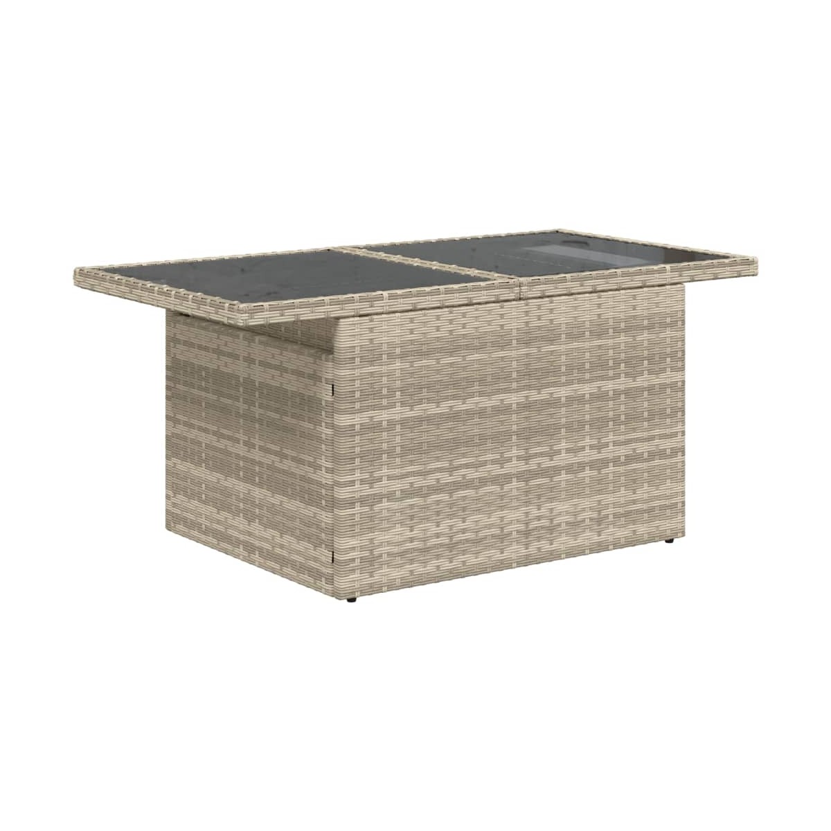 Este conjunto de sofás de jardín es el complemento perfecto para el jardín, terraza o patio, ya que proporciona un espacio confortable y acogedor para charlar con familiares y amigos o simplemente relajarte y disfrutar del aire libre. Material duradero: El ratán sintético, también conocido como ratán sintético, es un material sintético resistente y de bajo mantenimiento que se parece al ratán natural. Es ligero, fácil de limpiar y se usa comúnmente para muebles de exterior debido a su durabilidad y propiedades resistentes a la intemperie.Tablero ajustable: El tablero de la mesa se puede levantar para que la mesa sea más alta, lo que transforma la mesa al aire libre de una mesa de café a una mesa de comedor. Es perfecto para invitar a invitados o comer al aire libre.Experiencia de asiento cómoda: Estos muebles de exterior, completos con cojines acolchados gruesos, ofrecen una experiencia de asiento cómoda.Funda desenfundable y lavable: Estos cojines de asiento cuentan con fundas desenfundables para facilitar el lavado y mantenimiento.Diseño modular: Este conjunto de muebles de exterior tiene un diseño modular, por lo que es completamente flexible y fácil de mover, para que puedas crear una disposición de muebles de exterior personalizada. Información útil:Para asegurarte de que tus muebles de exterior se mantengan hermosos, recomendamos protegerlos con una funda impermeable.