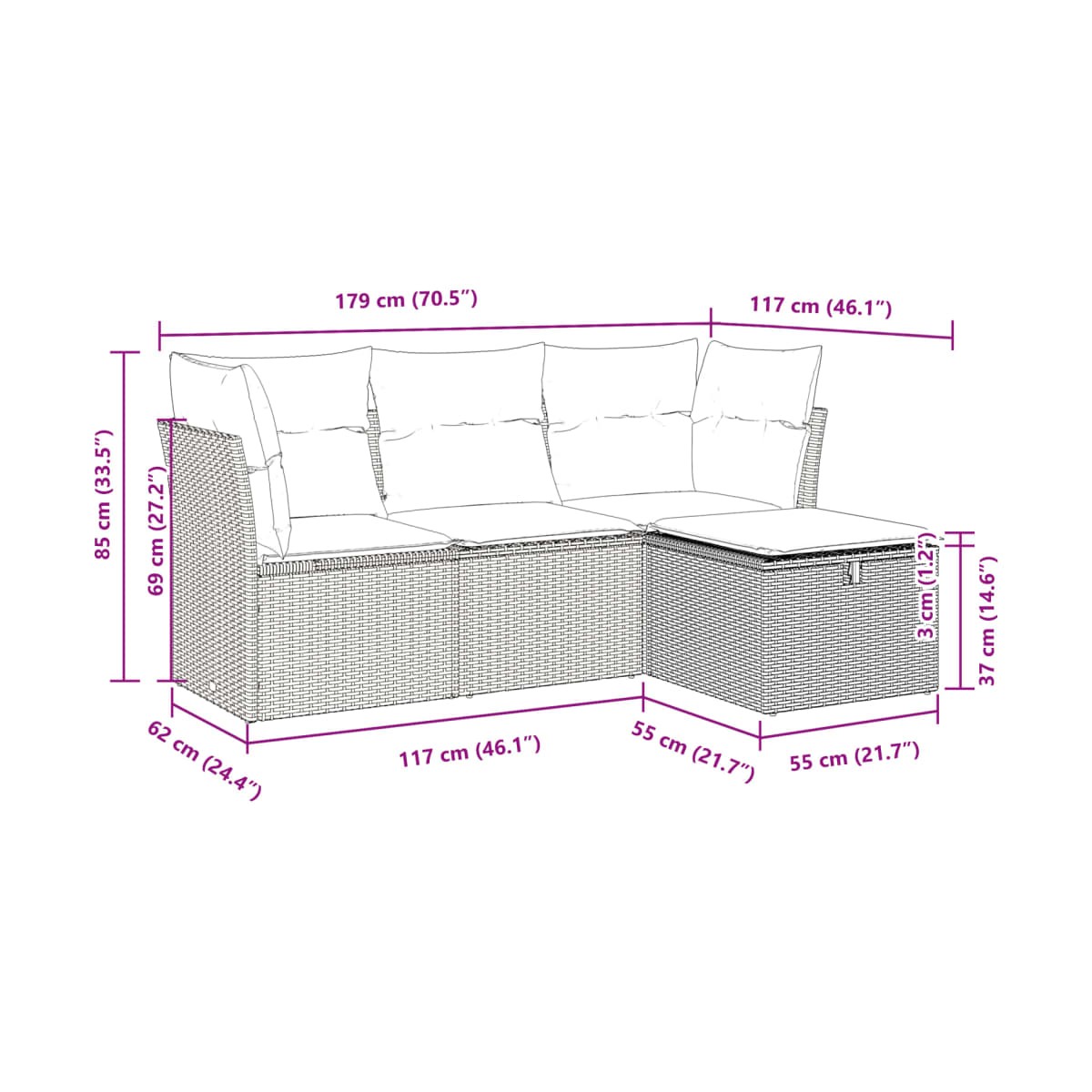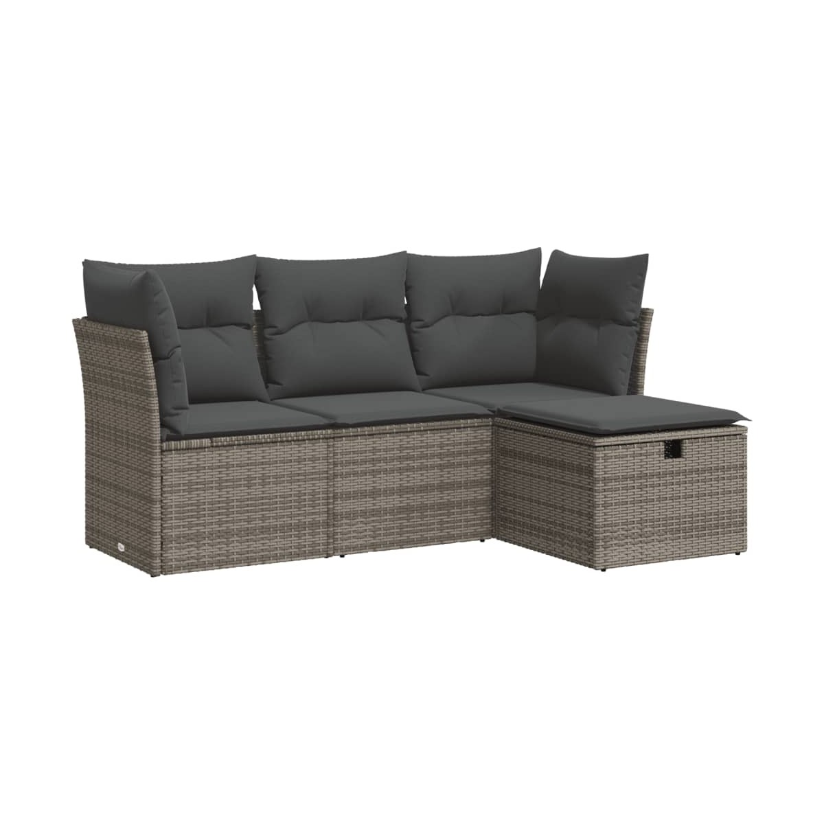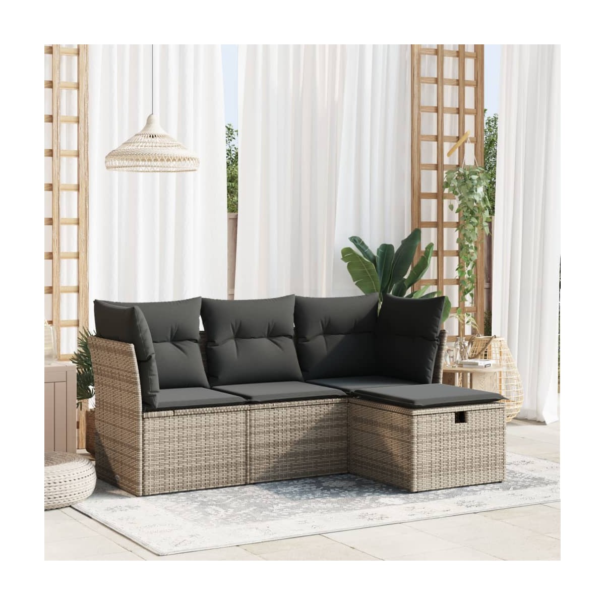 Este conjunto de sofás de jardín es el complemento perfecto para el jardín, terraza o patio, ya que proporciona un espacio confortable y acogedor para charlar con familiares y amigos o simplemente relajarte y disfrutar del aire libre. Material duradero: El ratán sintético, también conocido como ratán sintético, es un material sintético resistente y de bajo mantenimiento que se parece al ratán natural. Es ligero, fácil de limpiar y se usa comúnmente para muebles de exterior debido a su durabilidad y propiedades resistentes a la intemperie.Función de almacenamiento con bolsa resistente al agua: El mueble de jardín cuenta con espacio de almacenamiento debajo del asiento, completo con una bolsa resistente al agua para guardar cojines, juguetes y otros artículos. La bolsa interior se puede sujetar de forma segura a los muebles de exterior con cierres de gancho y bucle para mayor estabilidad.Reposapiés versátil: El taburete es versátil y sirve como un cómodo reposapiés para cuando descanses en el sofá o como asiento adicional en tu jardín.Funda desenfundable y lavable: Estos cojines de asiento cuentan con fundas desenfundables para facilitar el lavado y mantenimiento.Diseño modular: Este conjunto de muebles de exterior tiene un diseño modular, por lo que es completamente flexible y fácil de mover, para que puedas crear una disposición de muebles de exterior personalizada. Información útil:Para asegurarte de que tus muebles de exterior se mantengan hermosos, recomendamos protegerlos con una funda impermeable.
