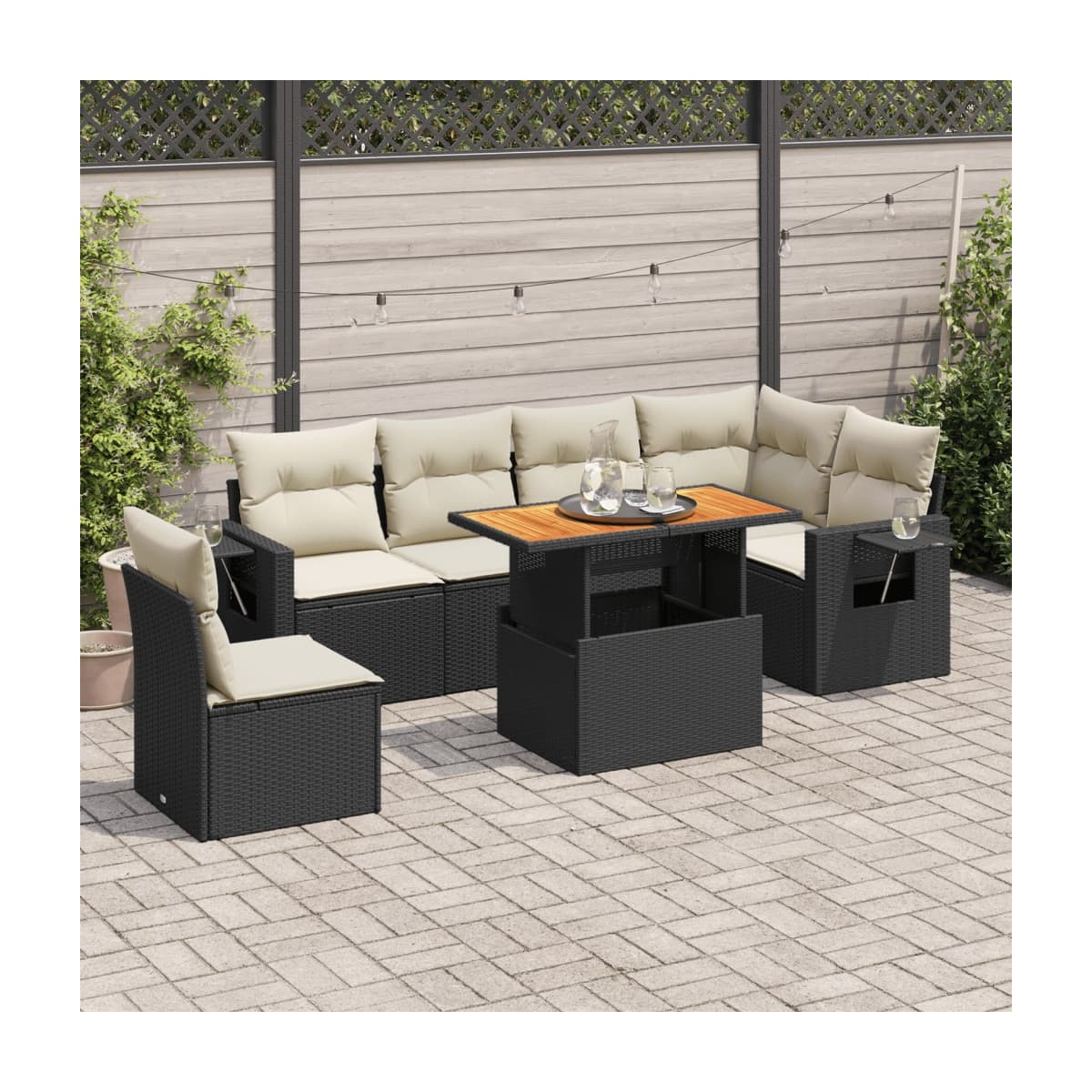 Este conjunto de sofás de jardín es el complemento perfecto para el jardín, terraza o patio, ya que proporciona un espacio confortable y acogedor para charlar con familiares y amigos o simplemente relajarte y disfrutar del aire libre. Material duradero: El ratán sintético, también conocido como ratán sintético, es un material sintético resistente y de bajo mantenimiento que se parece al ratán natural. Es ligero, fácil de limpiar y se usa comúnmente para muebles de exterior debido a su durabilidad y propiedades resistentes a la intemperie.Función de almacenamiento con bolsa resistente al agua: El mueble de jardín cuenta con espacio de almacenamiento debajo del asiento, completo con una bolsa resistente al agua para guardar cojines, juguetes y otros artículos. La bolsa interior se puede sujetar de forma segura a los muebles de exterior con cierres de gancho y bucle para mayor estabilidad.Tablero ajustable: El tablero de la mesa se puede levantar para que la mesa sea más alta, lo que transforma la mesa al aire libre de una mesa de café a una mesa de comedor. Es perfecto para invitar a invitados o comer al aire libre.Funda desenfundable y lavable: Estos cojines de asiento cuentan con fundas desenfundables para facilitar el lavado y mantenimiento.Diseño modular: Este conjunto de muebles de exterior tiene un diseño modular, por lo que es completamente flexible y fácil de mover, para que puedas crear una disposición de muebles de exterior personalizada. Información útil:Para asegurarte de que tus muebles de exterior se mantengan hermosos, recomendamos protegerlos con una funda impermeable.