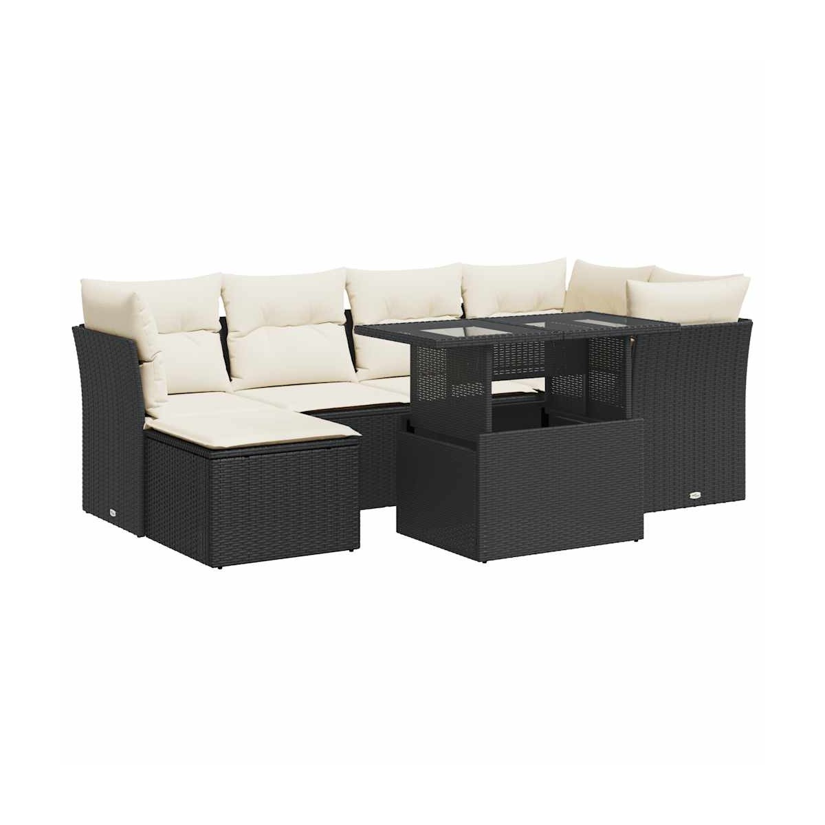 Este conjunto de sofás de jardín es el complemento perfecto para el jardín, terraza o patio, ya que proporciona un espacio confortable y acogedor para charlar con familiares y amigos o simplemente relajarte y disfrutar del aire libre. Material duradero: El ratán sintético, también conocido como ratán sintético, es un material sintético resistente y de bajo mantenimiento que se parece al ratán natural. Es ligero, fácil de limpiar y se usa comúnmente para muebles de exterior debido a su durabilidad y propiedades resistentes a la intemperie.Función de almacenamiento con bolsa resistente al agua: Cada asiento de jardín cuenta con un espacio de almacenamiento debajo del asiento, completo con una bolsa resistente al agua para guardar cojines, juguetes y otros artículos. La bolsa interior tiene una cubierta superior y se puede sujetar de forma segura al asiento con cierres de gancho y bucle para mayor estabilidad.Tablero ajustable: El tablero de la mesa se puede levantar para que la mesa sea más alta, lo que transforma la mesa al aire libre de una mesa de café a una mesa de comedor. Es perfecto para invitar a invitados o comer al aire libre.Reposapiés versátil: El taburete es versátil y sirve como un cómodo reposapiés para cuando descanses en el sofá o como asiento adicional en tu jardín.Funda desenfundable y lavable: Estos cojines de asiento cuentan con fundas desenfundables para facilitar el lavado y mantenimiento.Estructura robusta y estable: La estructura de acero con recubrimiento en polvo es fuerte, estable, duradero y resistente a la corrosión y a las inclemencias del tiempo, lo que garantiza un rendimiento duradero. Información útil:Para asegurarte de que tus muebles de exterior se mantengan hermosos, recomendamos protegerlos con una funda impermeable.