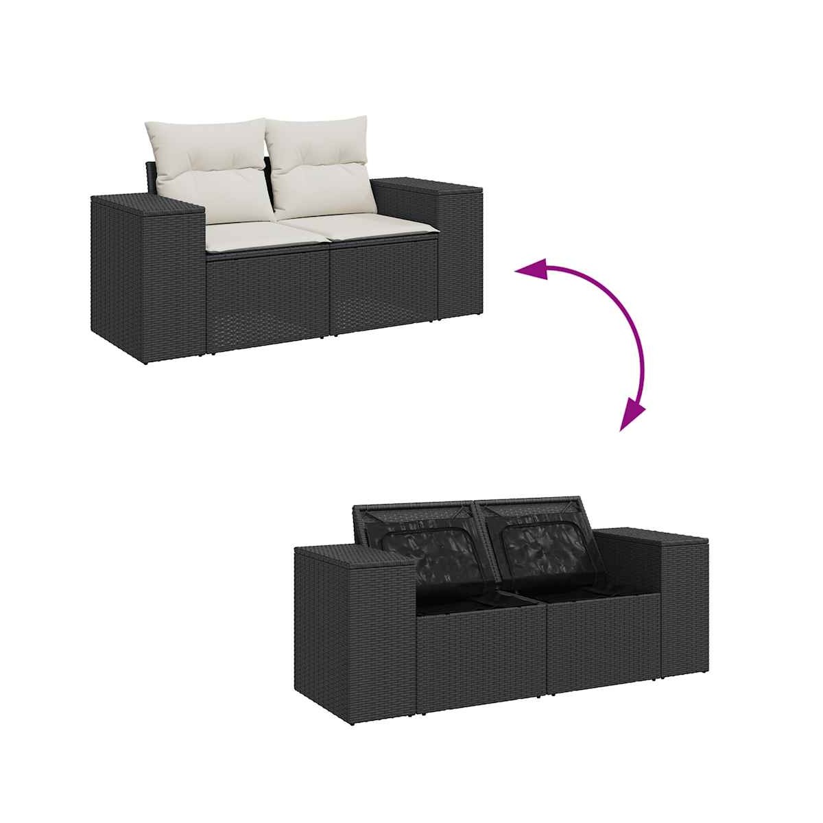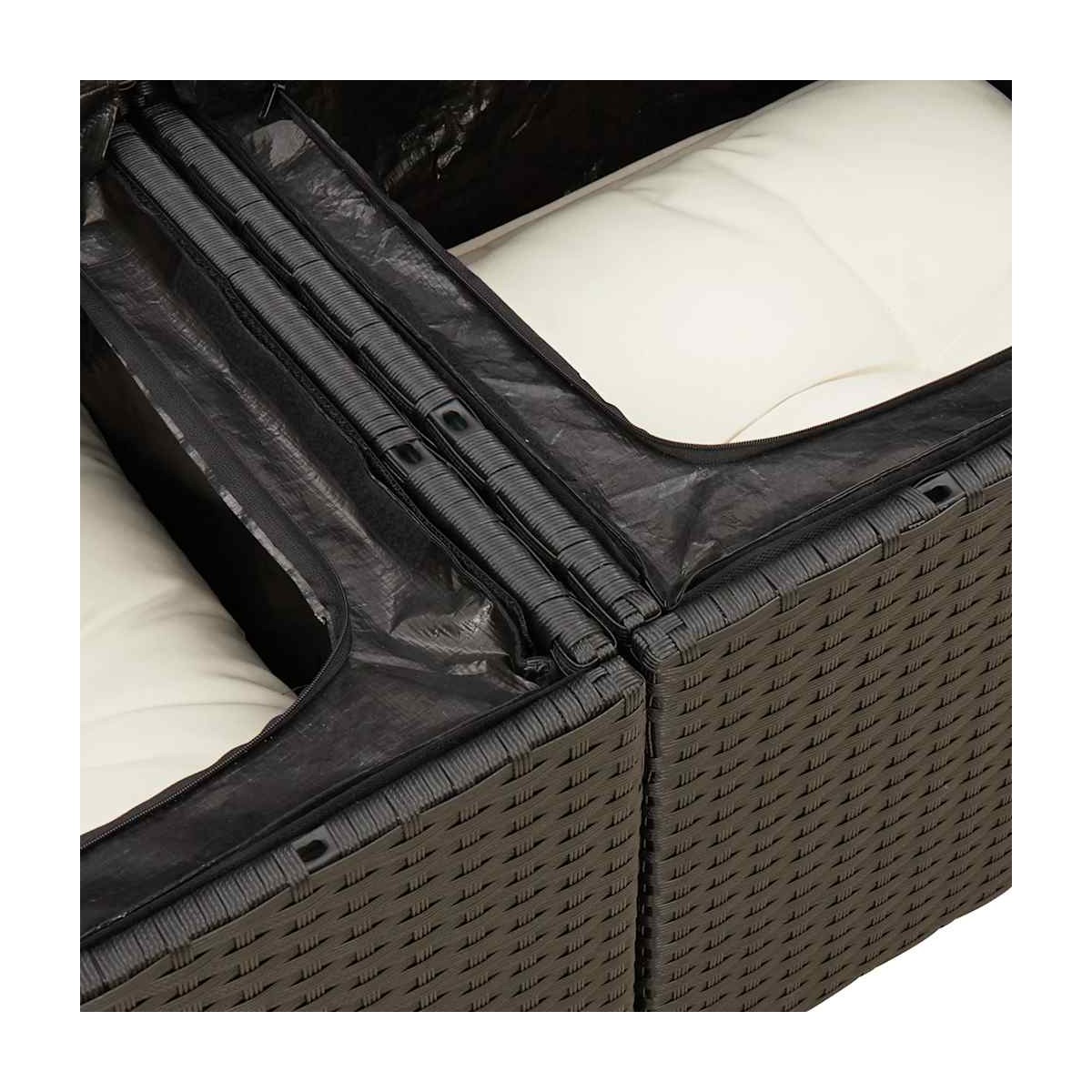 Este conjunto de sofás de jardín es el complemento perfecto para el jardín, terraza o patio, ya que proporciona un espacio confortable y acogedor para charlar con familiares y amigos o simplemente relajarte y disfrutar del aire libre. Material duradero: El ratán sintético, también conocido como ratán sintético, es un material sintético resistente y de bajo mantenimiento que se parece al ratán natural. Es ligero, fácil de limpiar y se usa comúnmente para muebles de exterior debido a su durabilidad y propiedades resistentes a la intemperie.Función de almacenamiento con bolsa resistente al agua: El mueble de jardín cuenta con espacio de almacenamiento debajo del asiento, completo con una bolsa resistente al agua para guardar cojines, juguetes y otros artículos. La bolsa interior se puede sujetar de forma segura a los muebles de exterior con cierres de gancho y bucle para mayor estabilidad.Tablero ajustable: El tablero de la mesa se puede levantar para que la mesa sea más alta, lo que transforma la mesa al aire libre de una mesa de café a una mesa de comedor. Es perfecto para invitar a invitados o comer al aire libre.Funda desenfundable y lavable: Estos cojines de asiento cuentan con fundas desenfundables para facilitar el lavado y mantenimiento.Diseño modular: Este conjunto de muebles de exterior tiene un diseño modular, por lo que es completamente flexible y fácil de mover, para que puedas crear una disposición de muebles de exterior personalizada. Información útil:Para asegurarte de que tus muebles de exterior se mantengan hermosos, recomendamos protegerlos con una funda impermeable.