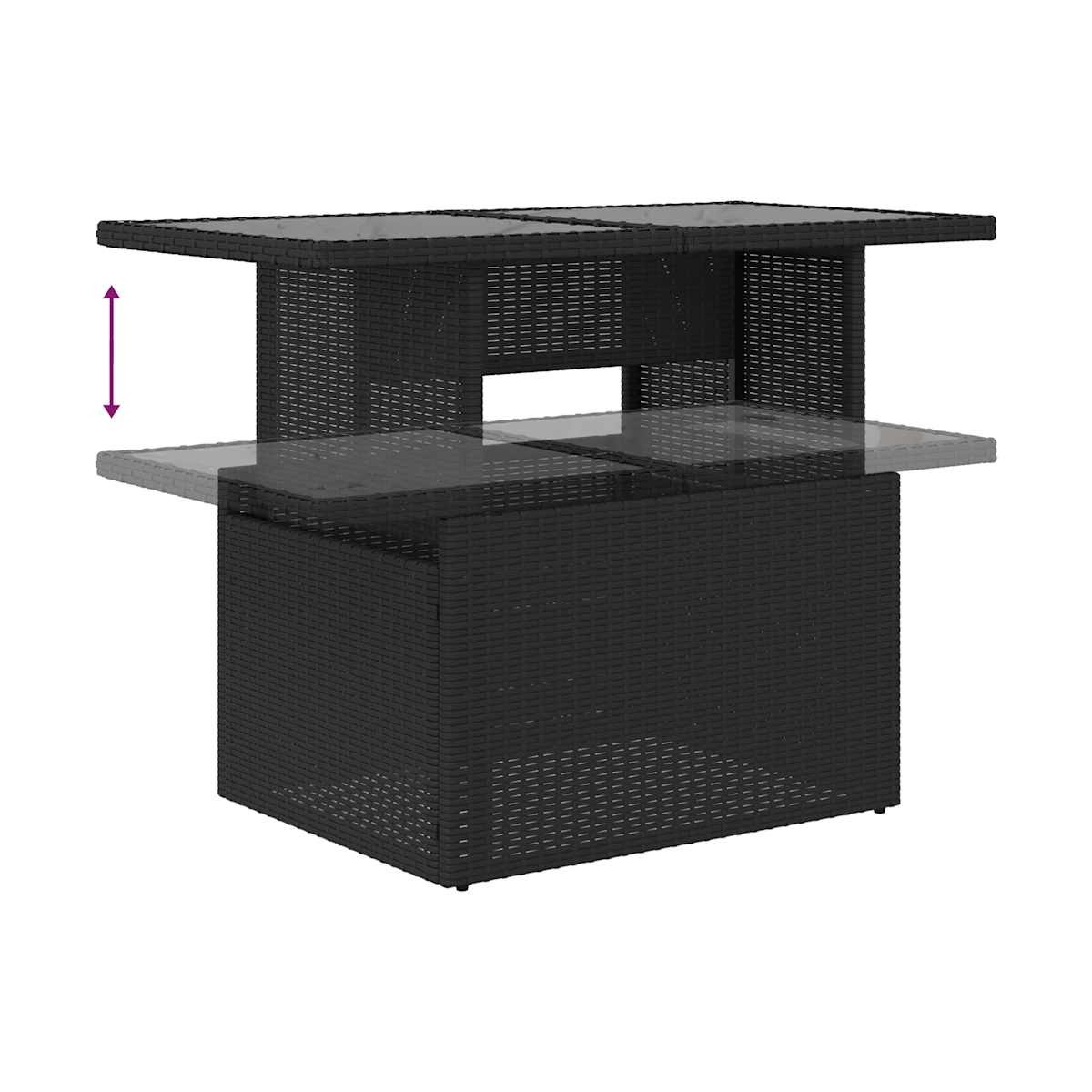 - Material: Ratán sintético, acero con recubrimiento en polvo, vidrio templado