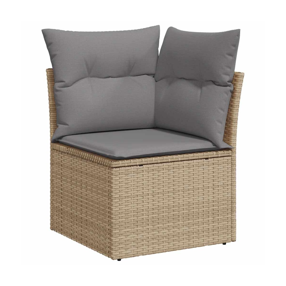 Este conjunto de sofás de jardín es el complemento perfecto para el jardín, terraza o patio, ya que proporciona un espacio confortable y acogedor para charlar con familiares y amigos o simplemente relajarte y disfrutar del aire libre.Material duradero: El ratán sintético, también conocido como ratán sintético, es un material sintético resistente y de bajo mantenimiento que se parece al ratán natural. Es ligero, fácil de limpiar y se usa comúnmente para muebles de exterior debido a su durabilidad y propiedades resistentes a la intemperie.Función de almacenamiento con bolsa resistente al agua: Cada asiento de jardín cuenta con un espacio de almacenamiento debajo del asiento, completo con una bolsa resistente al agua para guardar cojines, juguetes y otros artículos. Las bolsas interiores tienen una cubierta superior y se pueden sujetar de forma segura a los asientos con cierres de gancho y bucle para mayor estabilidad.Cómoda mesa auxiliar: Este mueble de exterior cuenta con una mesa auxiliar plegable con un muelle de gas, lo que proporciona un lugar práctico para mantener tus elementos esenciales al alcance de la mano.Funda desenfundable y lavable: Estos cojines de asiento cuentan con fundas desenfundables para facilitar el lavado y mantenimiento.Diseño modular: Este conjunto de muebles de exterior tiene un diseño modular, por lo que es completamente flexible y fácil de mover, para que puedas crear una disposición de muebles de exterior personalizada.Información útil:Para asegurarte de que tus muebles de exterior se mantengan hermosos, recomendamos protegerlos con una funda impermeable.