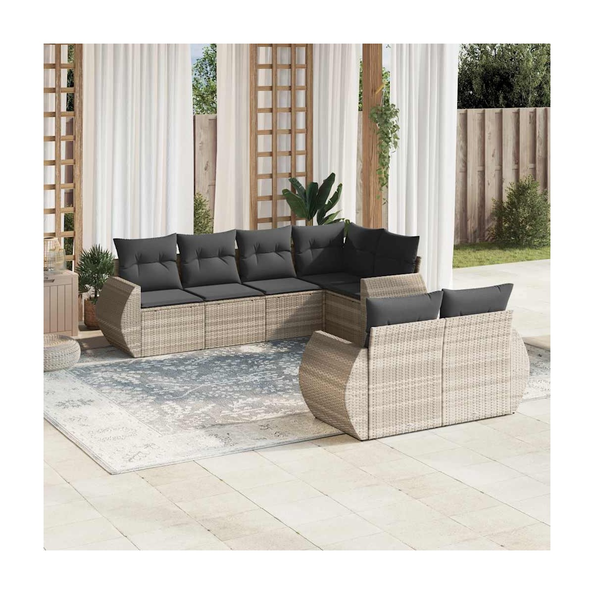 Este conjunto de sofás de jardín es el complemento perfecto para el jardín, terraza o patio, ya que proporciona un espacio confortable y acogedor para charlar con familiares y amigos o simplemente relajarte y disfrutar del aire libre. Material duradero: El ratán PE, también conocido como ratán sintético, es un material sintético resistente y de bajo mantenimiento que se parece al ratán natural. Es ligero, fácil de limpiar y se usa comúnmente para muebles de exterior debido a su durabilidad y propiedades resistentes a la intemperie.Función de almacenaje con bolsa impermeable: Cada asiento de jardín cuenta con espacio de almacenamiento debajo del asiento, completo con una bolsa resistente al agua para guardar cojines, juguetes y otros artículos. Las bolsas interiores tienen una cubierta superior y pueden fijarse firmemente a los asientos con cierres adhesivos para mayor estabilidad.Funda desenfundable y lavable: Estos cojines de asiento cuentan con fundas desenfundables para facilitar el lavado y mantenimiento.Diseño modular: Este conjunto de muebles de exterior tiene un diseño modular, por lo que es completamente flexible y fácil de mover, para que puedas crear una disposición de muebles de exterior personalizada. Información útil:Para asegurarte de que tus muebles de exterior se mantengan hermosos, recomendamos protegerlos con una funda impermeable.