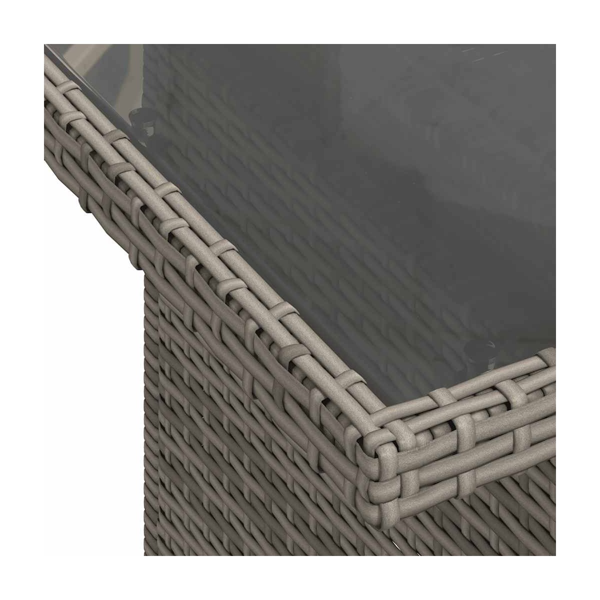 - Material: Ratán sintético, acero con recubrimiento en polvo, vidrio templado