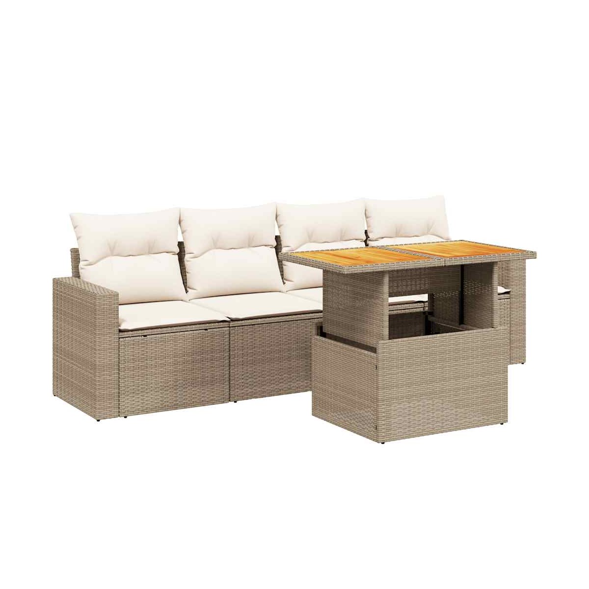Este conjunto de sofás de jardín es el complemento perfecto para el jardín, terraza o patio, ya que proporciona un espacio confortable y acogedor para charlar con familiares y amigos o simplemente relajarte y disfrutar del aire libre. Material duradero: El ratán PE, también conocido como ratán sintético, es un material sintético resistente y de bajo mantenimiento que se parece al ratán natural. Es ligero, fácil de limpiar y se usa comúnmente para muebles de exterior debido a su durabilidad y propiedades resistentes a la intemperie.Tablero ajustable: El tablero de la mesa se puede levantar para que la mesa sea más alta, lo que transforma la mesa de jardín de una mesa de centro a una mesa de comedor. Es perfecta para invitar a invitados o comer al aire libre.Experiencia de asiento cómoda: Estos muebles de exterior, completos con cojines acolchados gruesos, ofrecen una experiencia de asiento cómoda.Funda desenfundable y lavable: Estos cojines de asiento cuentan con fundas desenfundables para facilitar el lavado y mantenimiento.Diseño modular: Este conjunto de muebles de exterior tiene un diseño modular, por lo que es completamente flexible y fácil de mover, para que puedas crear una disposición de muebles de exterior personalizada. Información útil:Para asegurarte de que tus muebles de exterior se mantengan hermosos, recomendamos protegerlos con una funda impermeable.