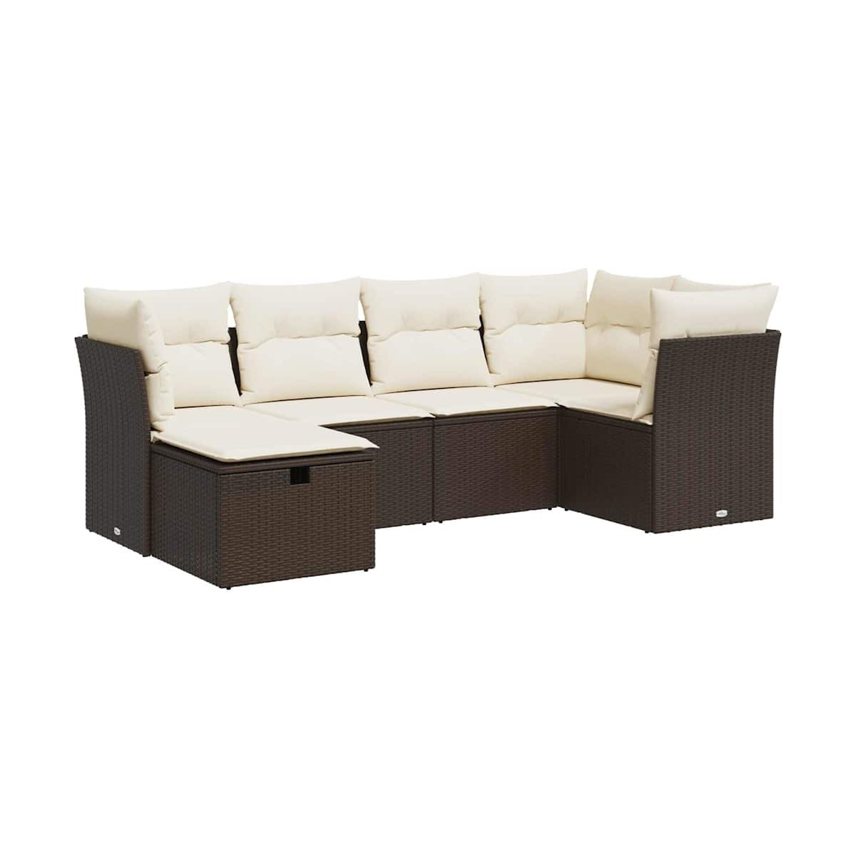 Este conjunto de sofás de jardín es el complemento perfecto para el jardín, terraza o patio, ya que proporciona un espacio confortable y acogedor para charlar con familiares y amigos o simplemente relajarte y disfrutar del aire libre. Material duradero: El ratán sintético, también conocido como ratán sintético, es un material sintético resistente y de bajo mantenimiento que se parece al ratán natural. Es ligero, fácil de limpiar y se usa comúnmente para muebles de exterior debido a su durabilidad y propiedades resistentes a la intemperie.Función de almacenamiento con bolsa resistente al agua: El mueble de jardín cuenta con espacio de almacenamiento debajo del asiento, completo con una bolsa resistente al agua para guardar cojines, juguetes y otros artículos. La bolsa interior se puede sujetar de forma segura a los muebles de exterior con cierres de gancho y bucle para mayor estabilidad.Reposapiés versátil: El taburete es versátil y sirve como un cómodo reposapiés para cuando descanses en el sofá o como asiento adicional en tu jardín.Funda desenfundable y lavable: Estos cojines de asiento cuentan con fundas desenfundables para facilitar el lavado y mantenimiento.Diseño modular: Este conjunto de muebles de exterior tiene un diseño modular, por lo que es completamente flexible y fácil de mover, para que puedas crear una disposición de muebles de exterior personalizada. Información útil:Para asegurarte de que tus muebles de exterior se mantengan hermosos, recomendamos protegerlos con una funda impermeable.