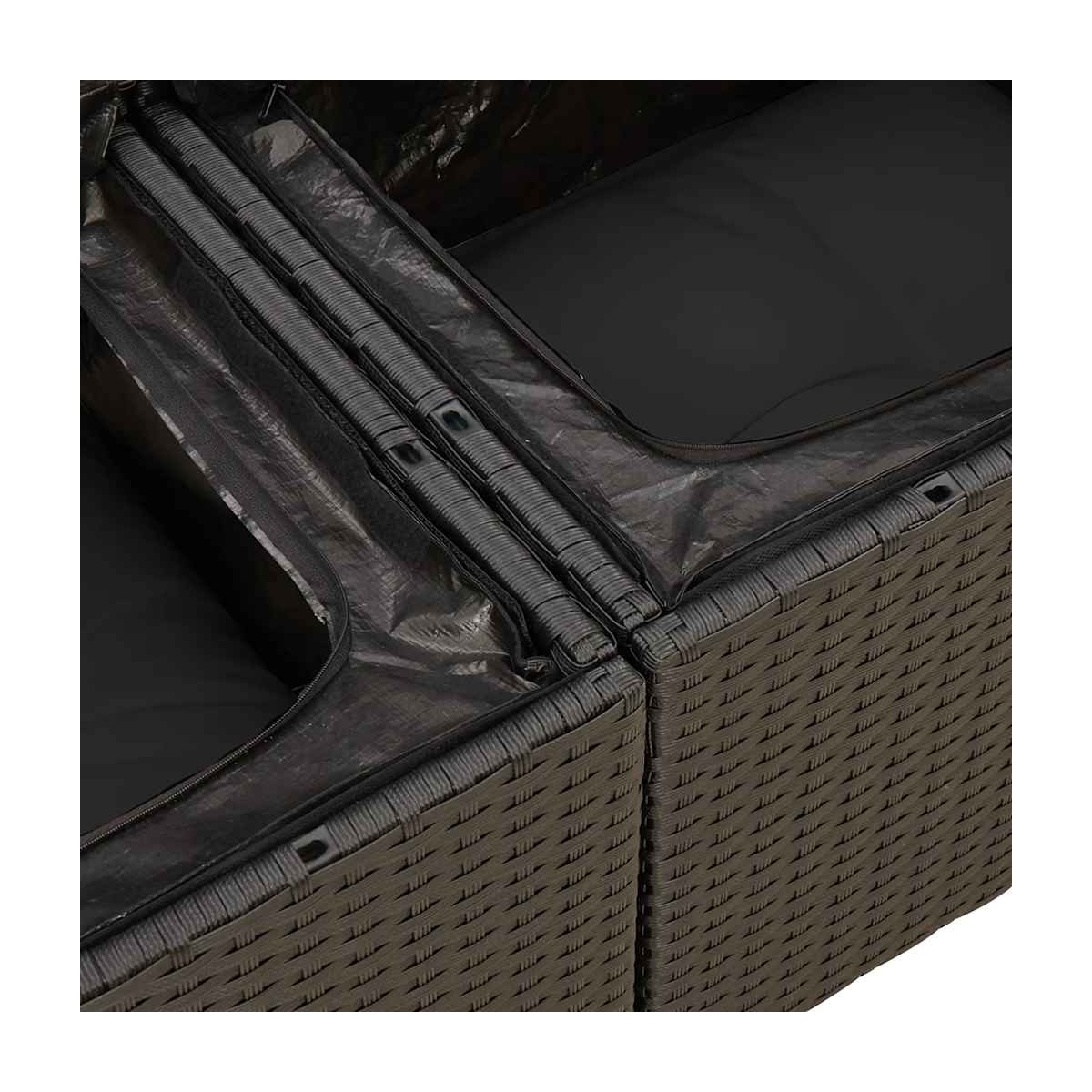 Este conjunto de sofás de jardín es el complemento perfecto para el jardín, terraza o patio, ya que proporciona un espacio confortable y acogedor para charlar con familiares y amigos o simplemente relajarte y disfrutar del aire libre.Material duradero: El ratán sintético, también conocido como ratán sintético, es un material sintético resistente y de bajo mantenimiento que se parece al ratán natural. Es ligero, fácil de limpiar y se usa comúnmente para muebles de exterior debido a su durabilidad y propiedades resistentes a la intemperie.Función de almacenamiento con bolsa resistente al agua: Cada asiento de jardín cuenta con un espacio de almacenamiento debajo del asiento, completo con una bolsa resistente al agua para guardar cojines, juguetes y otros artículos. Las bolsas interiores tienen una cubierta superior y se pueden sujetar de forma segura a los asientos con cierres de gancho y bucle para mayor estabilidad.Cómoda mesa auxiliar: Este mueble de exterior cuenta con una mesa auxiliar plegable con un muelle de gas, lo que proporciona un lugar práctico para mantener tus elementos esenciales al alcance de la mano.Funda desenfundable y lavable: Estos cojines de asiento cuentan con fundas desenfundables para facilitar el lavado y mantenimiento.Diseño modular: Este conjunto de muebles de exterior tiene un diseño modular, por lo que es completamente flexible y fácil de mover, para que puedas crear una disposición de muebles de exterior personalizada.Información útil:Para asegurarte de que tus muebles de exterior se mantengan hermosos, recomendamos protegerlos con una funda impermeable.