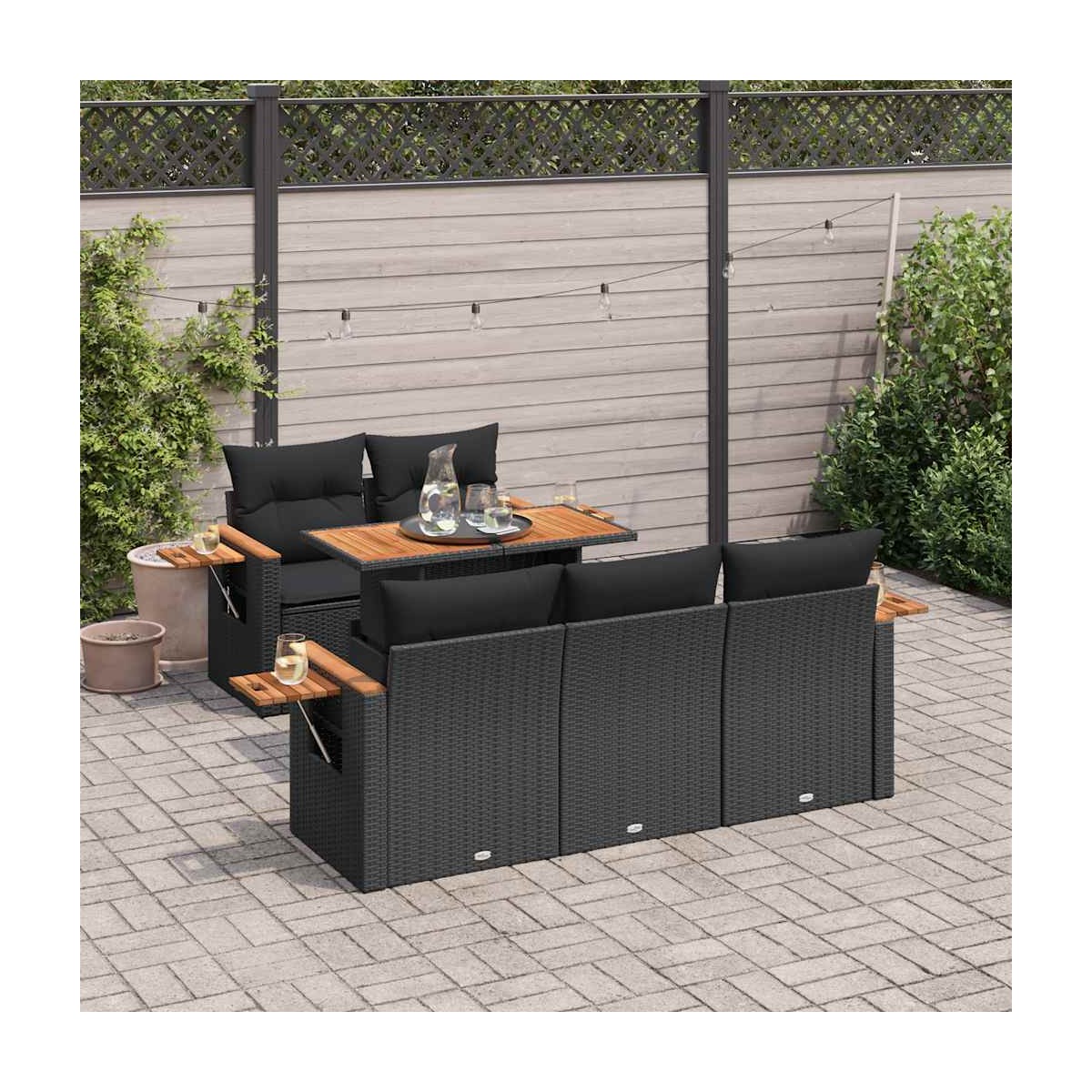 - Material: Ratán sintético, acero con recubrimiento en polvo, madera maciza de acacia con acabado de aceite