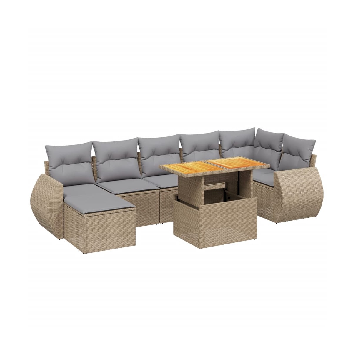 Este conjunto de sofás de jardín es el complemento perfecto para el jardín, terraza o patio, ya que proporciona un espacio confortable y acogedor para charlar con familiares y amigos o simplemente relajarte y disfrutar del aire libre. Material duradero: El ratán PE, también conocido como ratán sintético, es un material sintético resistente y de bajo mantenimiento que se parece al ratán natural. Es ligero, fácil de limpiar y se usa comúnmente para muebles de exterior debido a su durabilidad y propiedades resistentes a la intemperie.Tablero ajustable: El tablero de la mesa se puede levantar para que la mesa sea más alta, lo que transforma la mesa de jardín de una mesa de centro a una mesa de comedor. Es perfecta para invitar a invitados o comer al aire libre.Funda desenfundable y lavable: Estos cojines de asiento cuentan con fundas desenfundables para facilitar el lavado y mantenimiento.Diseño modular: Este conjunto de muebles de exterior tiene un diseño modular, por lo que es completamente flexible y fácil de mover, para que puedas crear una disposición de muebles de exterior personalizada. Información útil:Para asegurarte de que tus muebles de exterior se mantengan hermosos, recomendamos protegerlos con una funda impermeable.