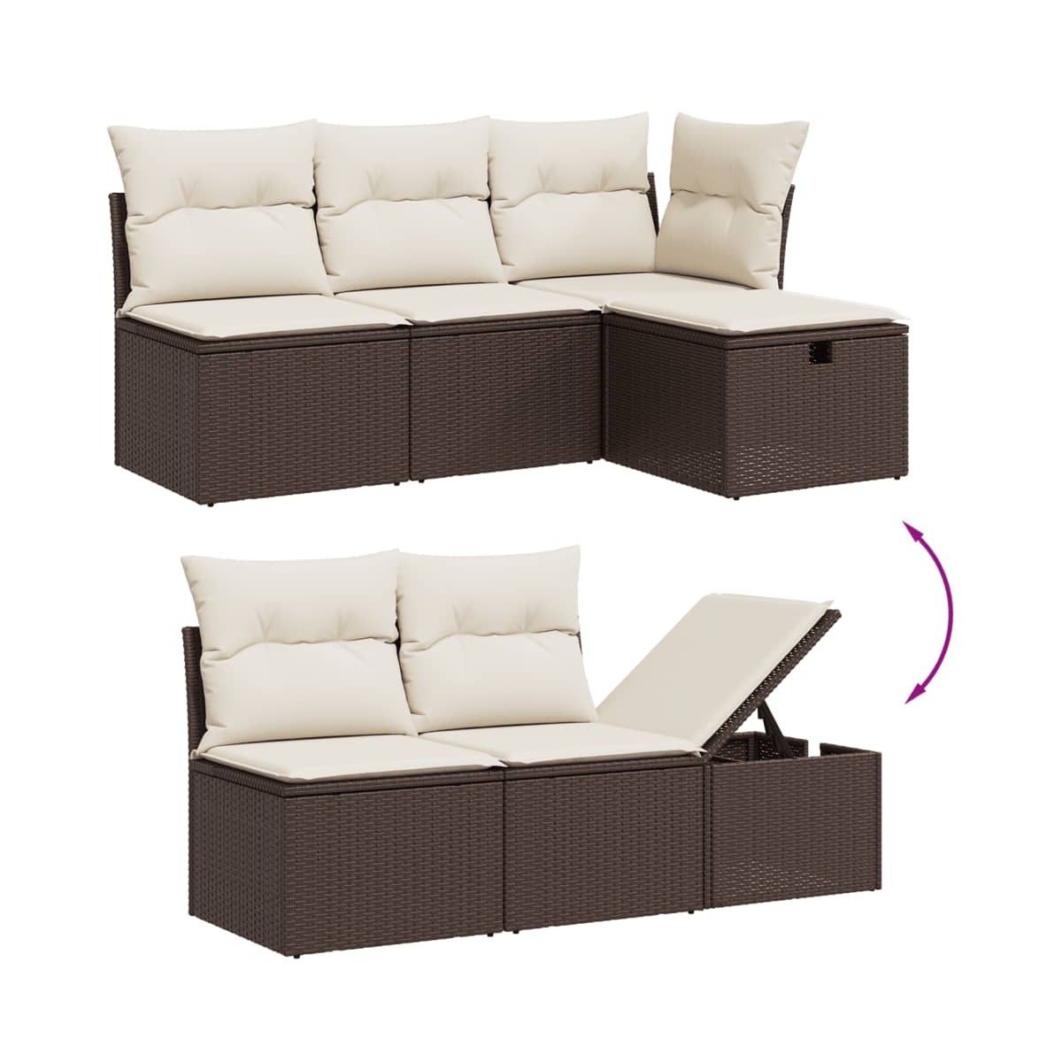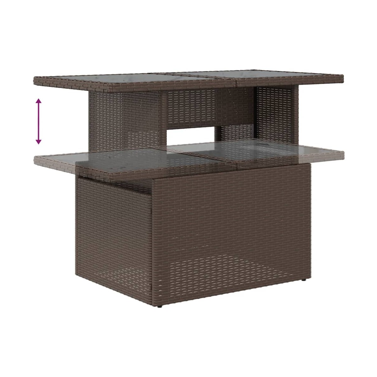 Este conjunto de sofás de jardín es el complemento perfecto para el jardín, terraza o patio, ya que proporciona un espacio confortable y acogedor para charlar con familiares y amigos o simplemente relajarte y disfrutar del aire libre. Material duradero: El ratán sintético, también conocido como ratán sintético, es un material sintético resistente y de bajo mantenimiento que se parece al ratán natural. Es ligero, fácil de limpiar y se usa comúnmente para muebles de exterior debido a su durabilidad y propiedades resistentes a la intemperie.Tablero ajustable: El tablero de la mesa se puede levantar para que la mesa sea más alta, lo que transforma la mesa de jardín de una mesa de centro a una mesa de comedor. Es perfecta para invitar a invitados o comer al aire libre.Superficie de vidrio: La superficie de la mesa de exterior es de vidrio templado resistente y duradero, por lo que es fácil de limpiar con un paño húmedo y añade un toque de elegancia a tu espacio exterior.Funda desenfundable y lavable: Estos cojines de asiento cuentan con fundas desenfundables para facilitar el lavado y mantenimiento.Diseño modular: Este conjunto de muebles de exterior tiene un diseño modular, por lo que es completamente flexible y fácil de mover, para que puedas crear una disposición de muebles de exterior personalizada. Información útil:Para asegurarte de que tus muebles de exterior se mantengan hermosos, recomendamos protegerlos con una funda impermeable.