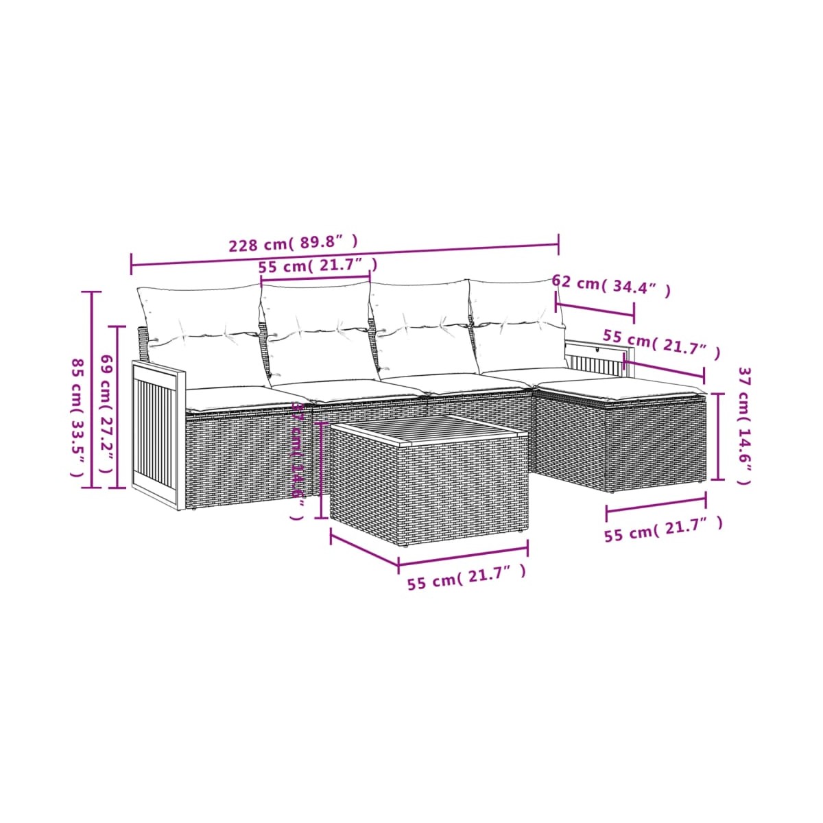 Este conjunto de sofás de jardín es el complemento perfecto para el jardín, terraza o patio, ya que proporciona un espacio confortable y acogedor para charlar con familiares y amigos o simplemente relajarte y disfrutar del aire libre. Material duradero: El ratán PE, también conocido como ratán sintético, es un material sintético resistente y de bajo mantenimiento que se parece al ratán natural. Es ligero, fácil de limpiar y se usa comúnmente para muebles de exterior debido a su durabilidad y propiedades resistentes a la intemperie.Función de almacenamiento con bolsa resistente al agua: El mueble de jardín cuenta con espacio de almacenamiento debajo del asiento, completo con una bolsa resistente al agua para guardar cojines, juguetes y otros artículos. La bolsa interior se puede sujetar de forma segura a los muebles de exterior con cierres de gancho y bucle para mayor estabilidad.Superficie estable y fácil de limpiar: Esta mesa de jardín tiene una superficie de madera de acacia que es resistente, duradero y fácil de limpiar con un paño húmedo.Funda desenfundable y lavable: Estos cojines de asiento cuentan con fundas desenfundables para facilitar el lavado y mantenimiento.Diseño modular: Este conjunto de muebles de exterior tiene un diseño modular, por lo que es completamente flexible y fácil de mover, para que puedas crear una disposición de muebles de exterior personalizada. Información útil:Para asegurarte de que tus muebles de exterior se mantengan hermosos, recomendamos protegerlos con una funda impermeable.