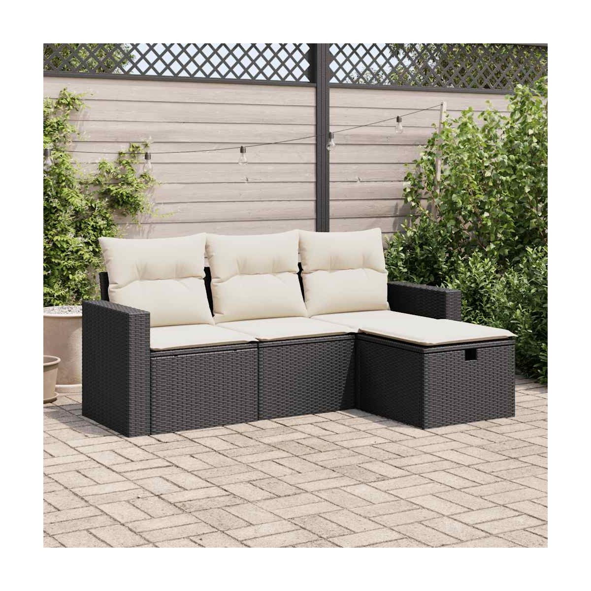 Este conjunto de sofás de jardín es el complemento perfecto para el jardín, terraza o patio, ya que proporciona un espacio confortable y acogedor para charlar con familiares y amigos o simplemente relajarte y disfrutar del aire libre. Material duradero: El ratán sintético, también conocido como ratán sintético, es un material sintético resistente y de bajo mantenimiento que se parece al ratán natural. Es ligero, fácil de limpiar y se usa comúnmente para muebles de exterior debido a su durabilidad y propiedades resistentes a la intemperie.Función de almacenamiento con bolsa resistente al agua: El mueble de jardín cuenta con espacio de almacenamiento debajo del asiento, completo con una bolsa resistente al agua para guardar cojines, juguetes y otros artículos. La bolsa interior se puede sujetar de forma segura a los muebles de exterior con cierres de gancho y bucle para mayor estabilidad.Reposapiés versátil: El taburete es versátil y sirve como un cómodo reposapiés para cuando descanses en el sofá o como asiento adicional en tu jardín.Funda desenfundable y lavable: Estos cojines de asiento cuentan con fundas desenfundables para facilitar el lavado y mantenimiento.Diseño modular: Este conjunto de muebles de exterior tiene un diseño modular, por lo que es completamente flexible y fácil de mover, para que puedas crear una disposición de muebles de exterior personalizada. Información útil:Para asegurarte de que tus muebles de exterior se mantengan hermosos, recomendamos protegerlos con una funda impermeable.