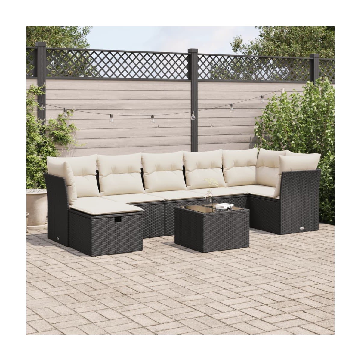 Este conjunto de sofás de jardín es el complemento perfecto para el jardín, terraza o patio, ya que proporciona un espacio confortable y acogedor para charlar con familiares y amigos o simplemente relajarte y disfrutar del aire libre. Material duradero: El ratán sintético, también conocido como ratán sintético, es un material sintético resistente y de bajo mantenimiento que se parece al ratán natural. Es ligero, fácil de limpiar y se usa comúnmente para muebles de exterior debido a su durabilidad y propiedades resistentes a la intemperie.Función de almacenamiento con bolsa resistente al agua: El mueble de jardín cuenta con espacio de almacenamiento debajo del asiento, completo con una bolsa resistente al agua para guardar cojines, juguetes y otros artículos. La bolsa interior se puede sujetar de forma segura a los muebles de exterior con cierres de gancho y bucle para mayor estabilidad.Reposapiés versátil: El taburete es versátil y sirve como un cómodo reposapiés para cuando descanses en el sofá o como asiento adicional en tu jardín.Funda desenfundable y lavable: Estos cojines de asiento cuentan con fundas desenfundables para facilitar el lavado y mantenimiento.Diseño modular: Este conjunto de muebles de exterior tiene un diseño modular, por lo que es completamente flexible y fácil de mover, para que puedas crear una disposición de muebles de exterior personalizada. Información útil:Para asegurarte de que tus muebles de exterior se mantengan hermosos, recomendamos protegerlos con una funda impermeable.