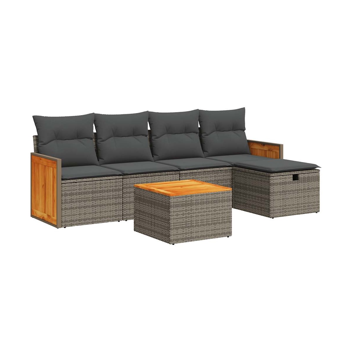 Este conjunto de sofás de jardín es el complemento perfecto para el jardín, terraza o patio, ya que proporciona un espacio confortable y acogedor para charlar con familiares y amigos o simplemente relajarte y disfrutar del aire libre. Material duradero: El ratán sintético, también conocido como ratán sintético, es un material sintético resistente y de bajo mantenimiento que se parece al ratán natural. Es ligero, fácil de limpiar y se usa comúnmente para muebles de exterior debido a su durabilidad y propiedades resistentes a la intemperie.Función de almacenamiento con bolsa resistente al agua: Cada asiento de jardín cuenta con un espacio de almacenamiento debajo del asiento, completo con una bolsa resistente al agua para guardar cojines, juguetes y otros artículos. La bolsa interior tiene una cubierta superior y se puede sujetar de forma segura al asiento con cierres de gancho y bucle para mayor estabilidad.Superficie estable y fácil de limpiar: Esta mesa de jardín tiene una superficie de madera de acacia que es resistente, duradero y fácil de limpiar con un paño húmedo.Reposapiés versátil: El taburete es versátil y sirve como un cómodo reposapiés para cuando descanses en el sofá o como asiento adicional en tu jardín.Funda desenfundable y lavable: Estos cojines de asiento cuentan con fundas desenfundables para facilitar el lavado y mantenimiento.Estructura robusta y estable: La estructura de acero con recubrimiento en polvo es fuerte, estable, duradero y resistente a la corrosión y a las inclemencias del tiempo, lo que garantiza un rendimiento duradero. Información útil:Para asegurarte de que tus muebles de exterior se mantengan hermosos, recomendamos protegerlos con una funda impermeable.