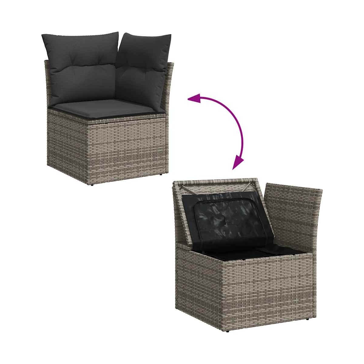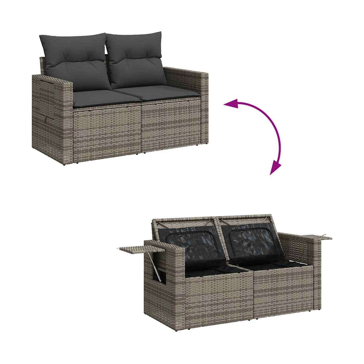 Este conjunto de sofás de jardín es el complemento perfecto para el jardín, terraza o patio, ya que proporciona un espacio confortable y acogedor para charlar con familiares y amigos o simplemente relajarte y disfrutar del aire libre. Material duradero: El ratán sintético, también conocido como ratán sintético, es un material sintético resistente y de bajo mantenimiento que se parece al ratán natural. Es ligero, fácil de limpiar y se usa comúnmente para muebles de exterior debido a su durabilidad y propiedades resistentes a la intemperie.Función de almacenamiento con bolsa resistente al agua: Cada asiento de jardín cuenta con un espacio de almacenamiento debajo del asiento, completo con una bolsa resistente al agua para guardar cojines, juguetes y otros artículos. La bolsa interior tiene una cubierta superior y se puede sujetar de forma segura al asiento con cierres de gancho y bucle para mayor estabilidad.Tablero ajustable: El tablero de la mesa se puede levantar para que la mesa sea más alta, lo que transforma la mesa al aire libre de una mesa de café a una mesa de comedor. Es perfecto para invitar a invitados o comer al aire libre.Funda desenfundable y lavable: Estos cojines de asiento cuentan con fundas desenfundables para facilitar el lavado y mantenimiento.Estructura robusta y estable: La estructura de acero con recubrimiento en polvo es fuerte, estable, duradero y resistente a la corrosión y a las inclemencias del tiempo, lo que garantiza un rendimiento duradero. Información útil:Para asegurarte de que tus muebles de exterior se mantengan hermosos, recomendamos protegerlos con una funda impermeable.