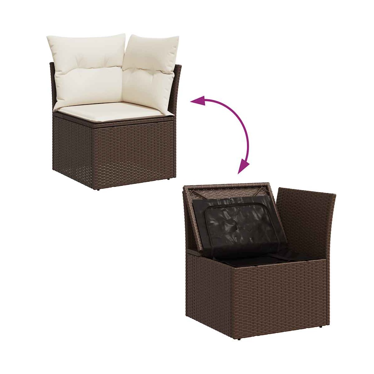Este conjunto de sofás de jardín es el complemento perfecto para el jardín, terraza o patio, ya que proporciona un espacio confortable y acogedor para charlar con familiares y amigos o simplemente relajarte y disfrutar del aire libre. Material duradero: El ratán sintético, también conocido como ratán sintético, es un material sintético resistente y de bajo mantenimiento que se parece al ratán natural. Es ligero, fácil de limpiar y se usa comúnmente para muebles de exterior debido a su durabilidad y propiedades resistentes a la intemperie.Función de almacenamiento con bolsa resistente al agua: Cada asiento de jardín cuenta con un espacio de almacenamiento debajo del asiento, completo con una bolsa resistente al agua para guardar cojines, juguetes y otros artículos. La bolsa interior tiene una cubierta superior y se puede sujetar de forma segura al asiento con cierres de gancho y bucle para mayor estabilidad.Tablero ajustable: El tablero de la mesa se puede levantar para que la mesa sea más alta, lo que transforma la mesa al aire libre de una mesa de café a una mesa de comedor. Es perfecto para invitar a invitados o comer al aire libre.Funda desenfundable y lavable: Estos cojines de asiento cuentan con fundas desenfundables para facilitar el lavado y mantenimiento.Estructura robusta y estable: La estructura de acero con recubrimiento en polvo es fuerte, estable, duradero y resistente a la corrosión y a las inclemencias del tiempo, lo que garantiza un rendimiento duradero. Información útil:Para asegurarte de que tus muebles de exterior se mantengan hermosos, recomendamos protegerlos con una funda impermeable.