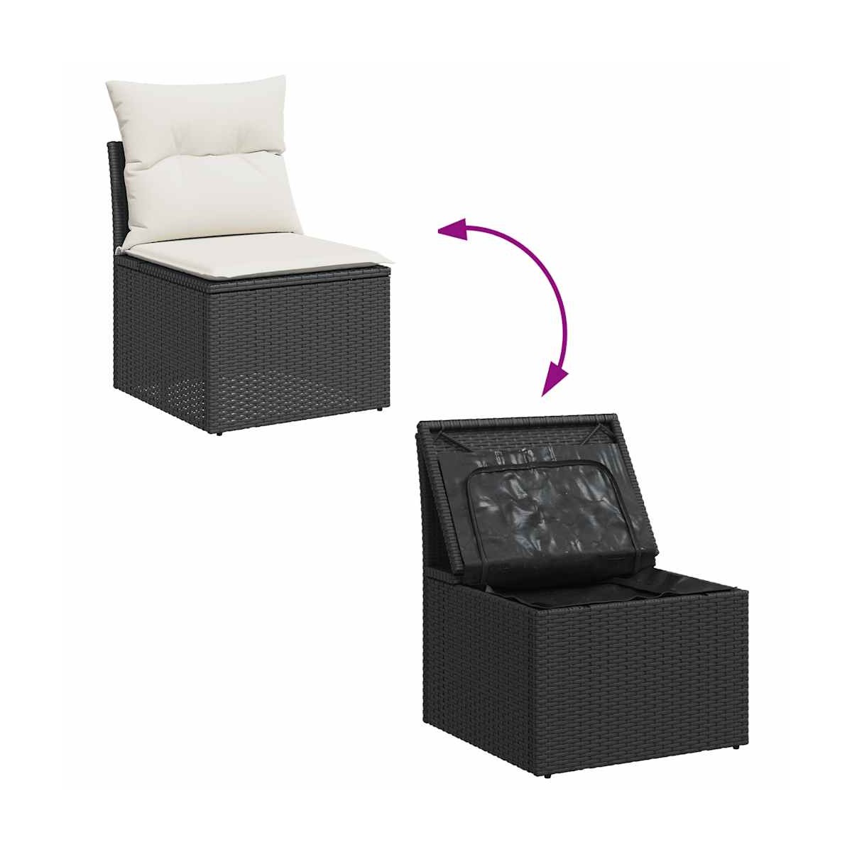 Este conjunto de sofás de jardín es el complemento perfecto para el jardín, terraza o patio, ya que proporciona un espacio confortable y acogedor para charlar con familiares y amigos o simplemente relajarte y disfrutar del aire libre.Material duradero: El ratán sintético, también conocido como ratán sintético, es un material sintético resistente y de bajo mantenimiento que se parece al ratán natural. Es ligero, fácil de limpiar y se usa comúnmente para muebles de exterior debido a su durabilidad y propiedades resistentes a la intemperie.Función de almacenamiento con bolsa resistente al agua: Cada asiento de jardín cuenta con un espacio de almacenamiento debajo del asiento, completo con una bolsa resistente al agua para guardar cojines, juguetes y otros artículos. Las bolsas interiores tienen una cubierta superior y se pueden sujetar de forma segura a los asientos con cierres de gancho y bucle para mayor estabilidad.Funda desenfundable y lavable: Estos cojines de asiento cuentan con fundas desenfundables para facilitar el lavado y mantenimiento.Diseño modular: Este conjunto de muebles de exterior tiene un diseño modular, por lo que es completamente flexible y fácil de mover, para que puedas crear una disposición de muebles de exterior personalizada.Información útil:Para asegurarte de que tus muebles de exterior se mantengan hermosos, recomendamos protegerlos con una funda impermeable.