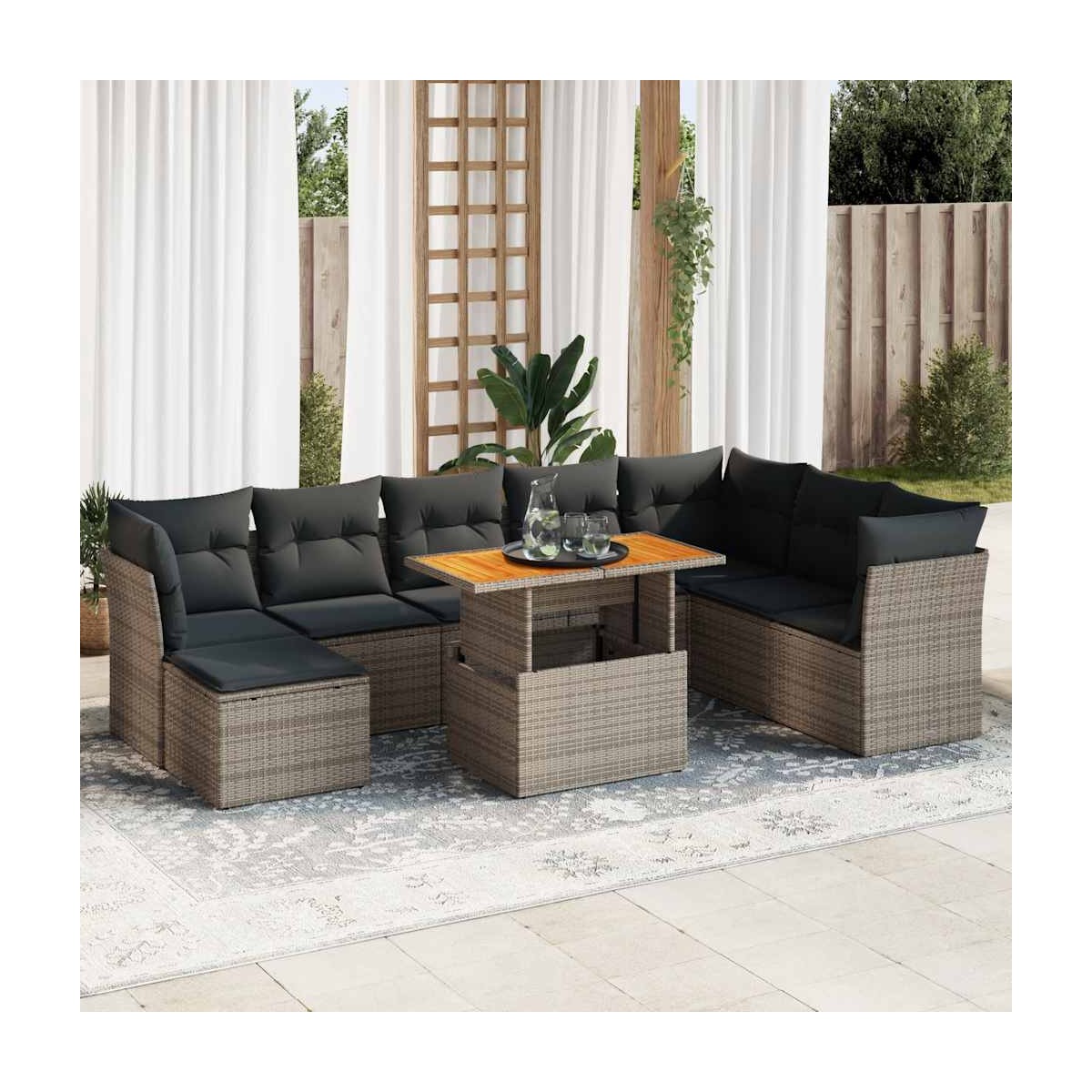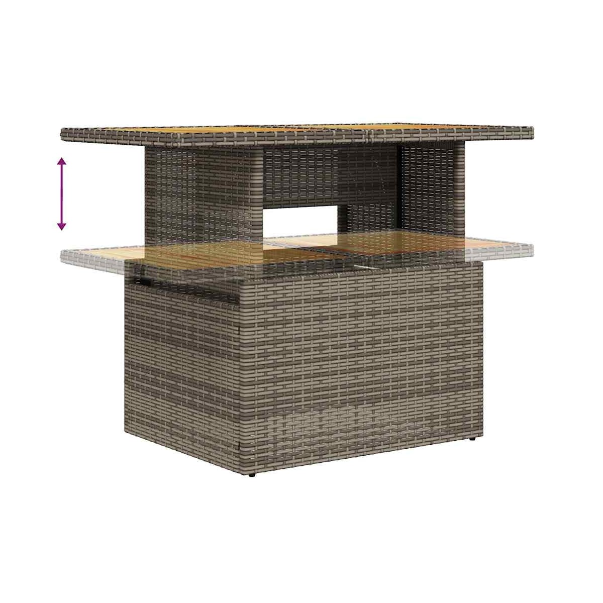 Este conjunto de sofás de jardín es el complemento perfecto para el jardín, terraza o patio, ya que proporciona un espacio confortable y acogedor para charlar con familiares y amigos o simplemente relajarte y disfrutar del aire libre. Material duradero: El ratán sintético, también conocido como ratán sintético, es un material sintético resistente y de bajo mantenimiento que se parece al ratán natural. Es ligero, fácil de limpiar y se usa comúnmente para muebles de exterior debido a su durabilidad y propiedades resistentes a la intemperie.Función de almacenamiento con bolsa resistente al agua: El mueble de jardín cuenta con espacio de almacenamiento debajo del asiento, completo con una bolsa resistente al agua para guardar cojines, juguetes y otros artículos. La bolsa interior se puede sujetar de forma segura a los muebles de exterior con cierres de gancho y bucle para mayor estabilidad.Tablero ajustable: El tablero de la mesa se puede levantar para que la mesa sea más alta, lo que transforma la mesa al aire libre de una mesa de café a una mesa de comedor. Es perfecto para invitar a invitados o comer al aire libre.Funda desenfundable y lavable: Estos cojines de asiento cuentan con fundas desenfundables para facilitar el lavado y mantenimiento.Diseño modular: Este conjunto de muebles de exterior tiene un diseño modular, por lo que es completamente flexible y fácil de mover, para que puedas crear una disposición de muebles de exterior personalizada. Información útil:Para asegurarte de que tus muebles de exterior se mantengan hermosos, recomendamos protegerlos con una funda impermeable.