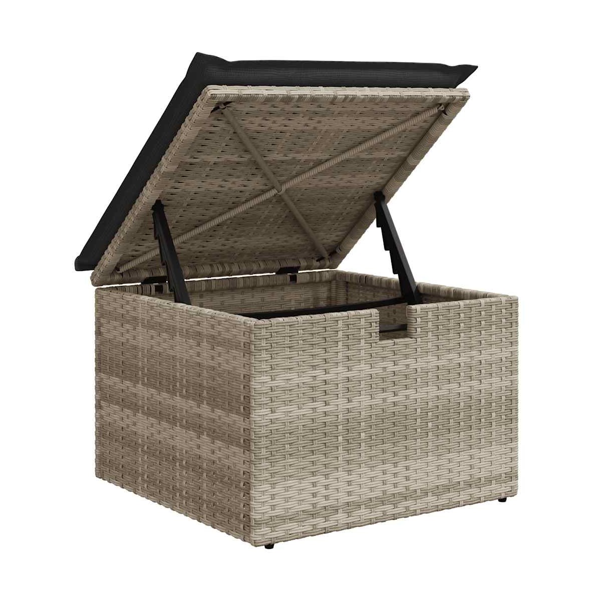 Este conjunto de sofás de jardín es el complemento perfecto para el jardín, terraza o patio, ya que proporciona un espacio confortable y acogedor para charlar con familiares y amigos o simplemente relajarte y disfrutar del aire libre. Material duradero: El ratán sintético, también conocido como ratán sintético, es un material sintético resistente y de bajo mantenimiento que se parece al ratán natural. Es ligero, fácil de limpiar y se usa comúnmente para muebles de exterior debido a su durabilidad y propiedades resistentes a la intemperie.Función de almacenamiento con bolsa resistente al agua: El mueble de jardín cuenta con espacio de almacenamiento debajo del asiento, completo con una bolsa resistente al agua para guardar cojines, juguetes y otros artículos. La bolsa interior se puede sujetar de forma segura a los muebles de exterior con cierres de gancho y bucle para mayor estabilidad.Reposapiés versátil: El taburete es versátil y sirve como un cómodo reposapiés para cuando descanses en el sofá o como asiento adicional en tu jardín.Funda desenfundable y lavable: Estos cojines de asiento cuentan con fundas desenfundables para facilitar el lavado y mantenimiento.Diseño modular: Este conjunto de muebles de exterior tiene un diseño modular, por lo que es completamente flexible y fácil de mover, para que puedas crear una disposición de muebles de exterior personalizada. Información útil:Para asegurarte de que tus muebles de exterior se mantengan hermosos, recomendamos protegerlos con una funda impermeable.