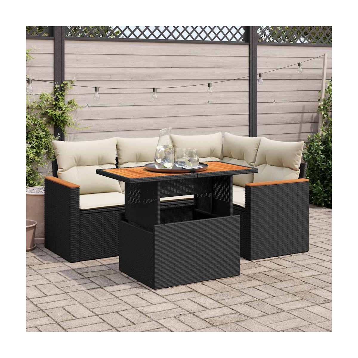 - Material: Ratán sintético, acero con recubrimiento en polvo, madera maciza de acacia con acabado de aceite