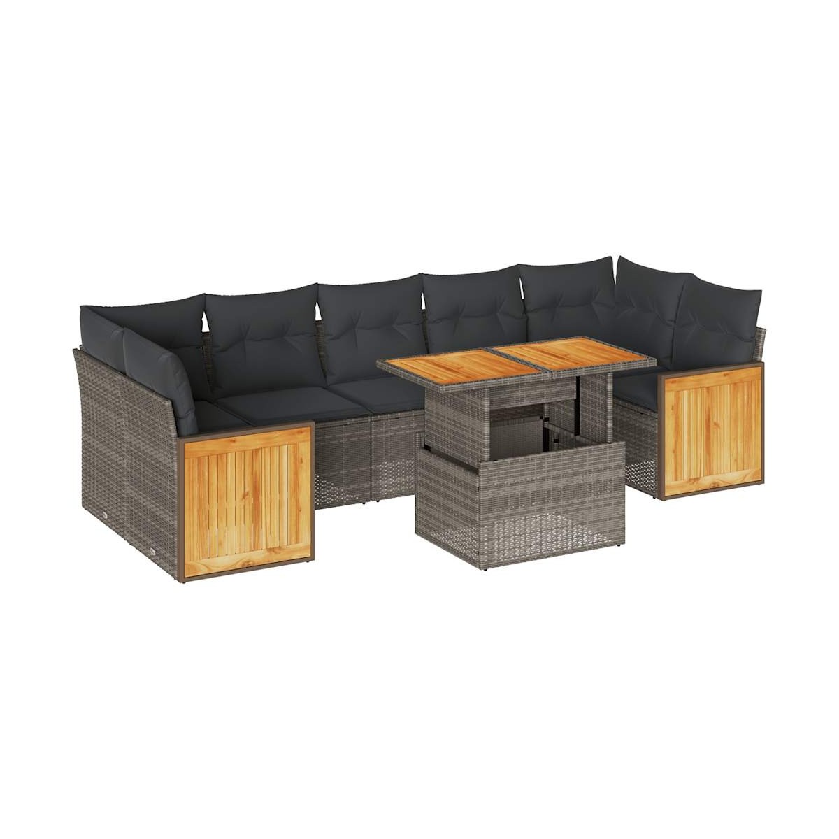 - Material: Ratán sintético, acero con recubrimiento en polvo, madera maciza de acacia con acabado de aceite