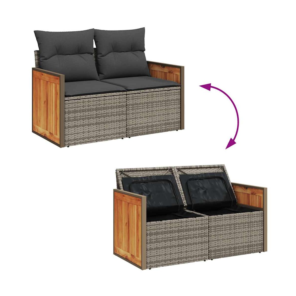 Este conjunto de sofás de jardín es el complemento perfecto para el jardín, terraza o patio, ya que proporciona un espacio confortable y acogedor para charlar con familiares y amigos o simplemente relajarte y disfrutar del aire libre. Material duradero: El ratán sintético, también conocido como ratán sintético, es un material sintético resistente y de bajo mantenimiento que se parece al ratán natural. Es ligero, fácil de limpiar y se usa comúnmente para muebles de exterior debido a su durabilidad y propiedades resistentes a la intemperie.Función de almacenamiento con bolsa resistente al agua: Cada asiento de jardín cuenta con un espacio de almacenamiento debajo del asiento, completo con una bolsa resistente al agua para guardar cojines, juguetes y otros artículos. Las bolsas interiores tienen una cubierta superior y se pueden sujetar de forma segura a los asientos con cierres de gancho y bucle para mayor estabilidad.Funda desenfundable y lavable: Estos cojines de asiento cuentan con fundas desenfundables para facilitar el lavado y mantenimiento.Diseño modular: Este conjunto de muebles de exterior tiene un diseño modular, por lo que es completamente flexible y fácil de mover, para que puedas crear una disposición de muebles de exterior personalizada. Información útil:Para asegurarte de que tus muebles de exterior se mantengan hermosos, recomendamos protegerlos con una funda impermeable.