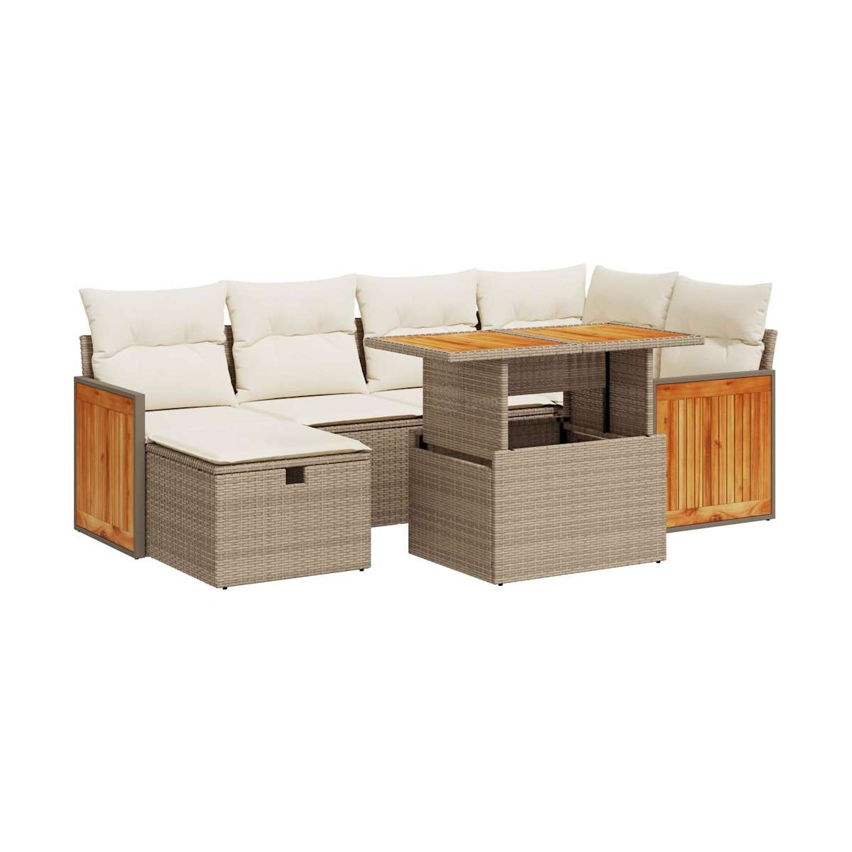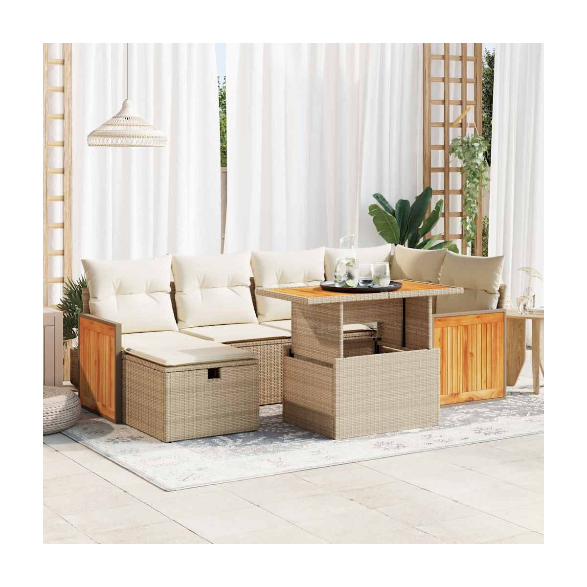 Este conjunto de sofás de jardín es el complemento perfecto para el jardín, terraza o patio, ya que proporciona un espacio confortable y acogedor para charlar con familiares y amigos o simplemente relajarte y disfrutar del aire libre. Material duradero: El ratán sintético, también conocido como ratán sintético, es un material sintético resistente y de bajo mantenimiento que se parece al ratán natural. Es ligero, fácil de limpiar y se usa comúnmente para muebles de exterior debido a su durabilidad y propiedades resistentes a la intemperie.Función de almacenamiento con bolsa resistente al agua: Cada asiento de jardín cuenta con un espacio de almacenamiento debajo del asiento, completo con una bolsa resistente al agua para guardar cojines, juguetes y otros artículos. La bolsa interior tiene una cubierta superior y se puede sujetar de forma segura al asiento con cierres de gancho y bucle para mayor estabilidad.Tablero ajustable: El tablero de la mesa se puede levantar para que la mesa sea más alta, lo que transforma la mesa al aire libre de una mesa de café a una mesa de comedor. Es perfecto para invitar a invitados o comer al aire libre.Reposapiés versátil: El taburete es versátil y sirve como un cómodo reposapiés para cuando descanses en el sofá o como asiento adicional en tu jardín.Funda desenfundable y lavable: Estos cojines de asiento cuentan con fundas desenfundables para facilitar el lavado y mantenimiento.Estructura robusta y estable: La estructura de acero con recubrimiento en polvo es fuerte, estable, duradero y resistente a la corrosión y a las inclemencias del tiempo, lo que garantiza un rendimiento duradero. Información útil:Para asegurarte de que tus muebles de exterior se mantengan hermosos, recomendamos protegerlos con una funda impermeable.